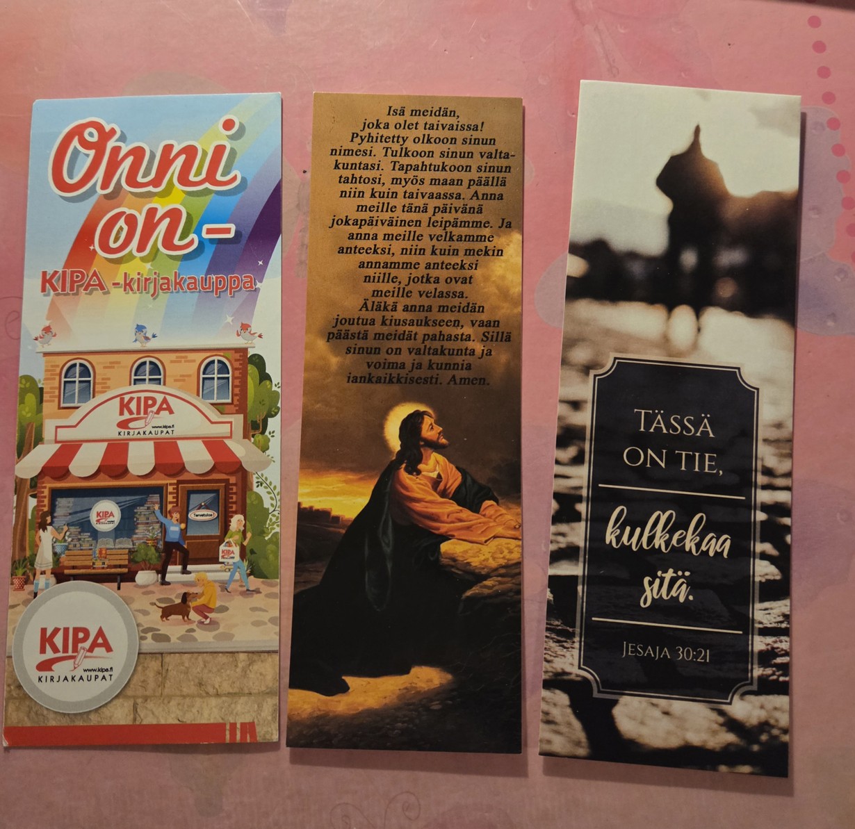 Lähetä kuvakisaan kuva kirjanmerkistäsi - voita Jokipiin Pellavan torkkupeitto ja tyyny Kirjanmerkit Violette 1.1.2026 klo 23:48 Välillä on useampikin kirja lukemisen alla, joten kirjanmerkkejäkin tarvitaan useampi.