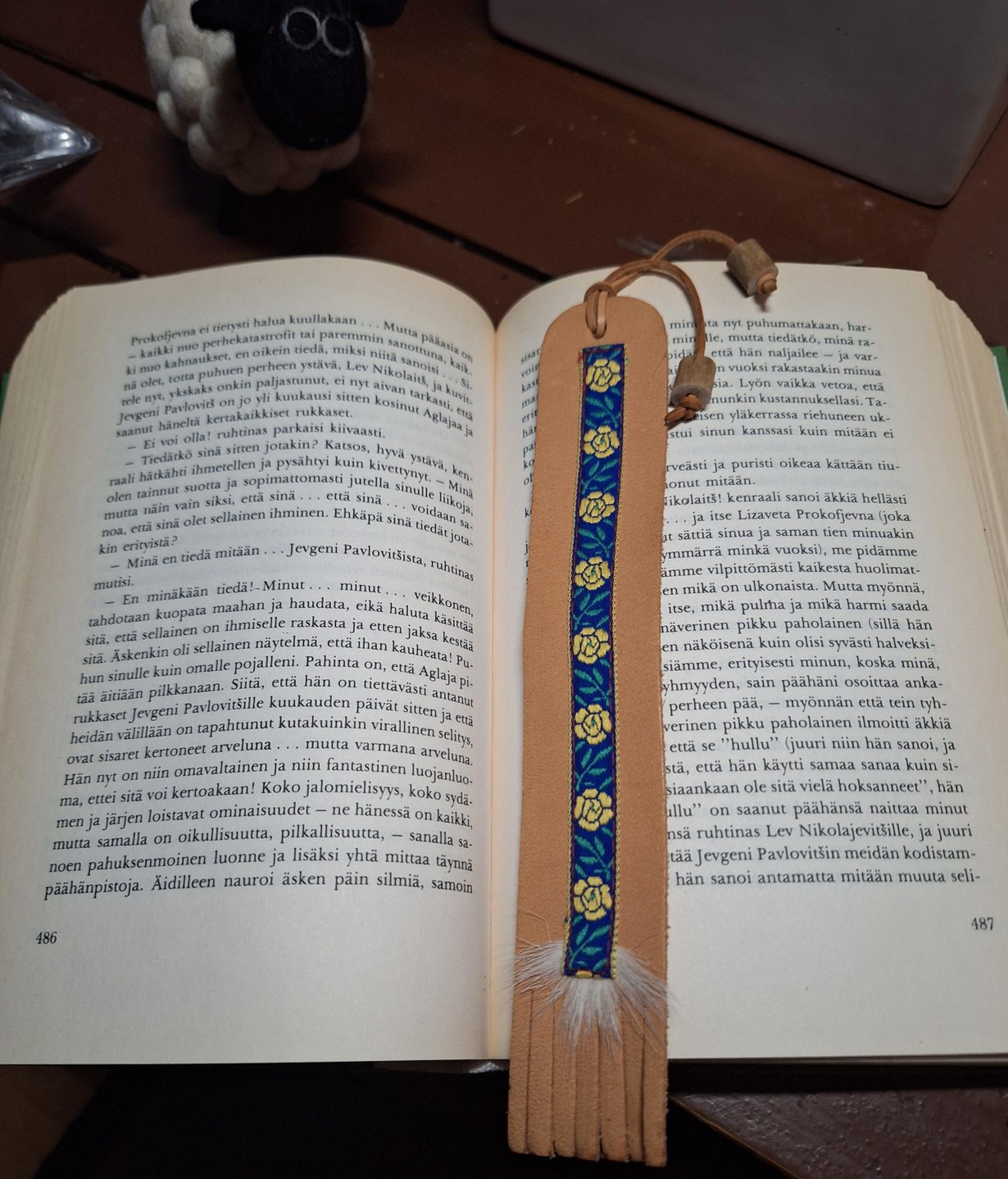 Tämän kirjanmerkin sain lahjaksi parikymmentä vuotta sitten puolisoltani Lapin matkalla. Kirjanmerkki muistuttaa minua ikimuistoisista hetkistä yhdessä ja lähes 100km patikoinnista erämaassa rinkka selässä. Elämä oli huoletonta ja ihanaa!