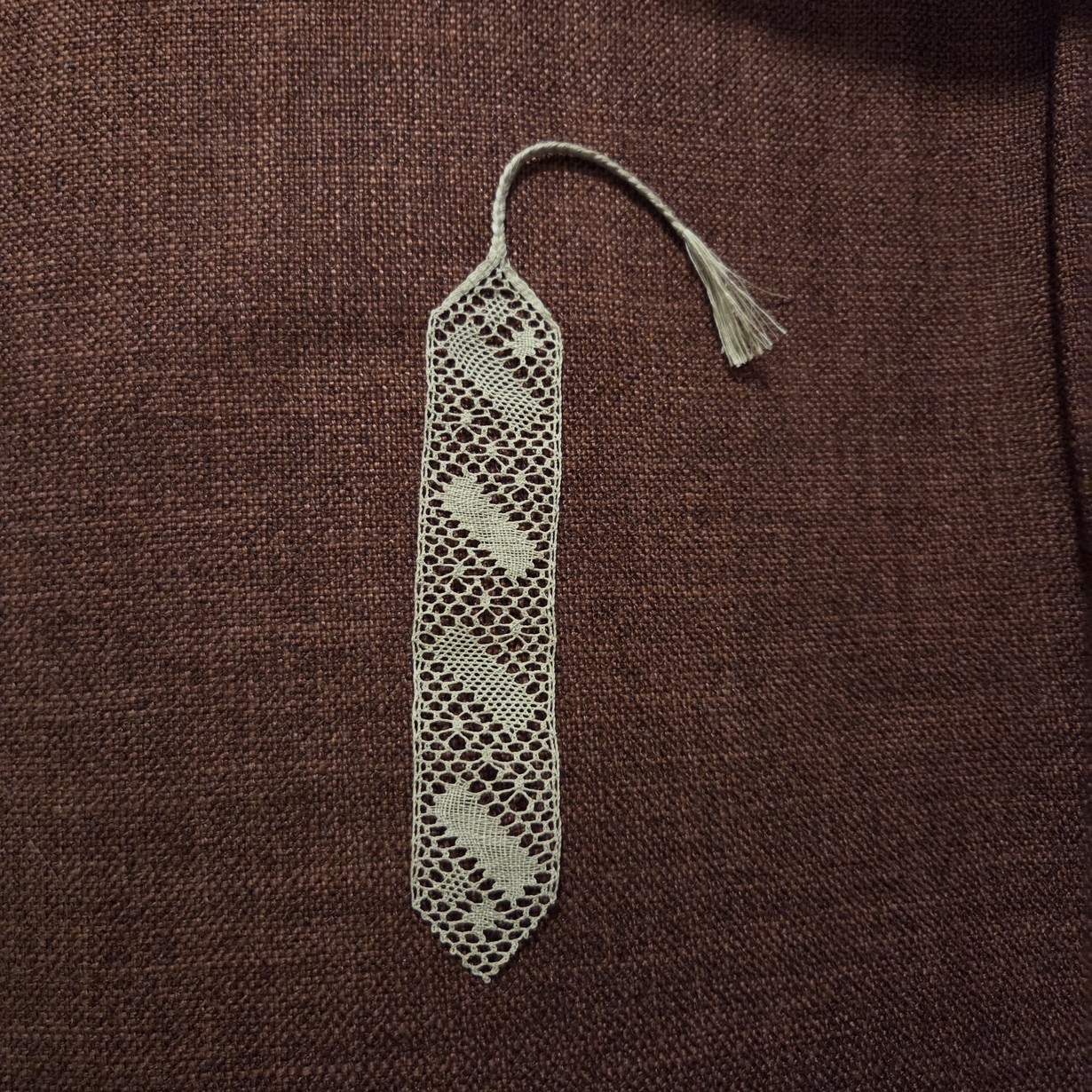 Sain hyvältä ystävältäni hänen itse nypläämänsä kirjanmerkin yli 20 vuotta sitten. Se on ollut välillä kadoksissa, mutta nyt on taas käytössä.