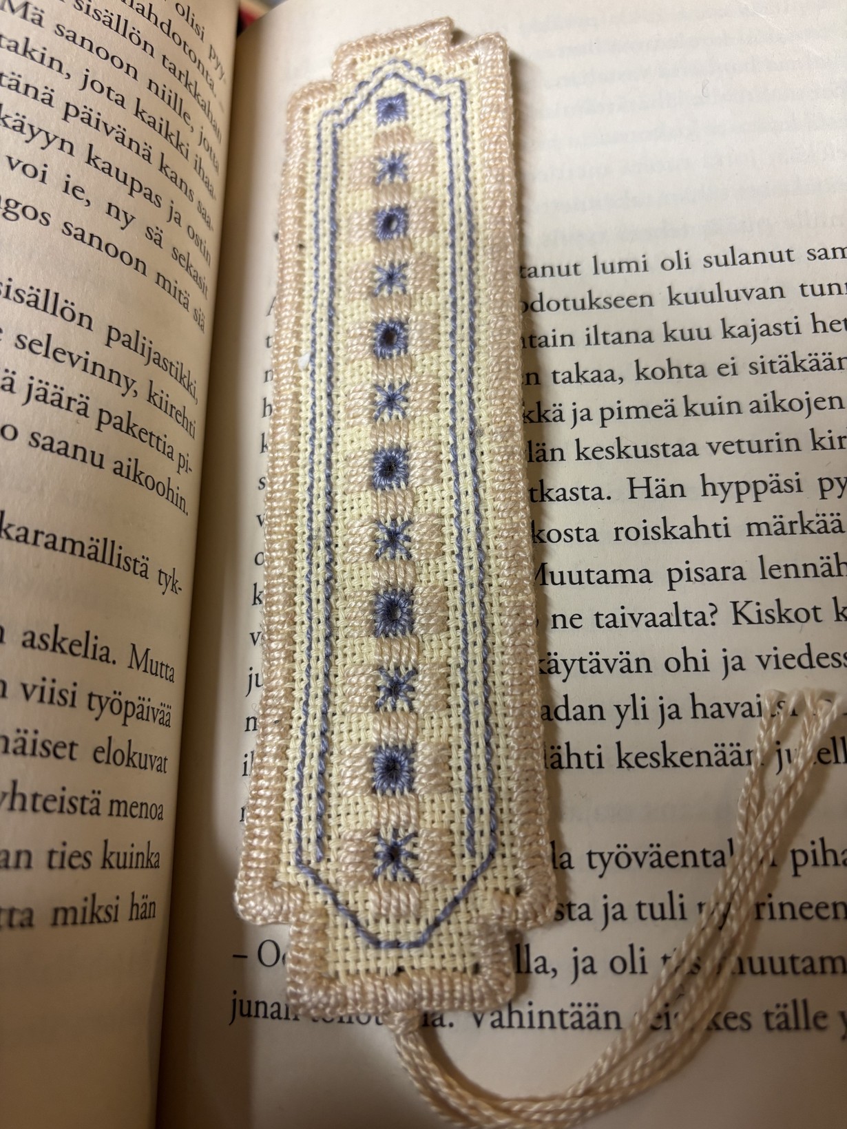 Lähetä kuvakisaan kuva kirjanmerkistäsi - voita Jokipiin Pellavan torkkupeitto ja tyyny Kirjanmerkki Helleena 2.1.2026 klo 21:35 Tämä on kirjailtu muisto äidistäni