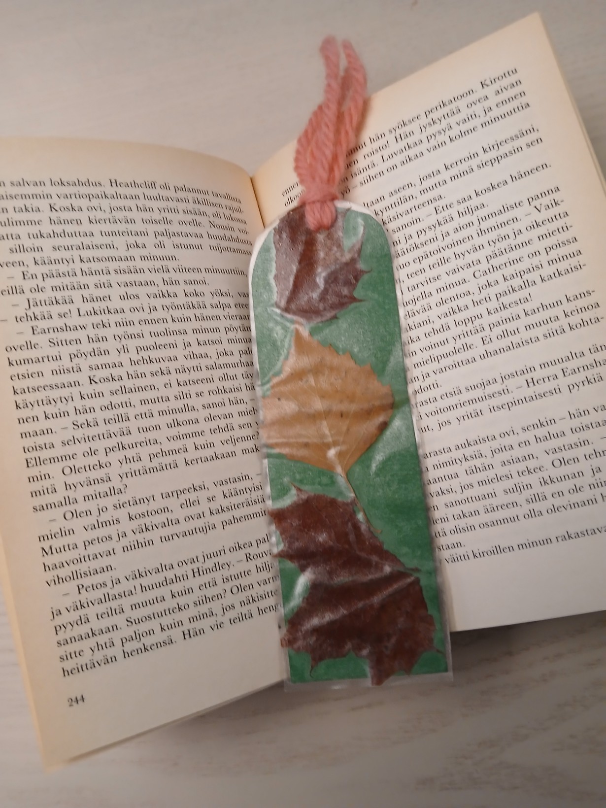 Puolisoni Mummin päivätoiminnassa askartelema kirjanmerkki ♡. Minulla on myös lasteni tekemiä merkkejä, ja kaikkia käytän, milloin mitäkin 😊