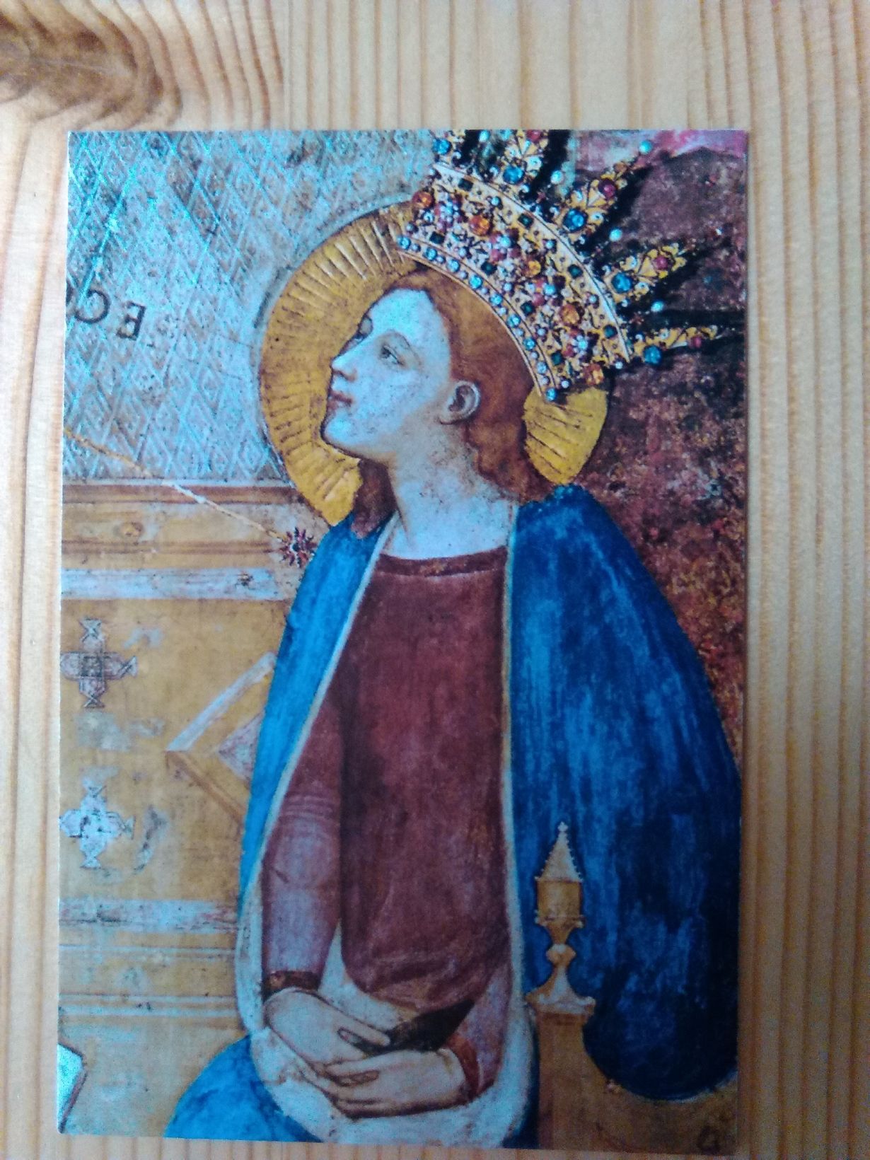 Tämä kirjanmerkkinäkin käytetty pieni kortti on matkamuisto Firenzestä joitakin vuosia sitten. Sain sen katoliselta papilta Basilica della Santissima Annunziata -nimisessä kirkossa.