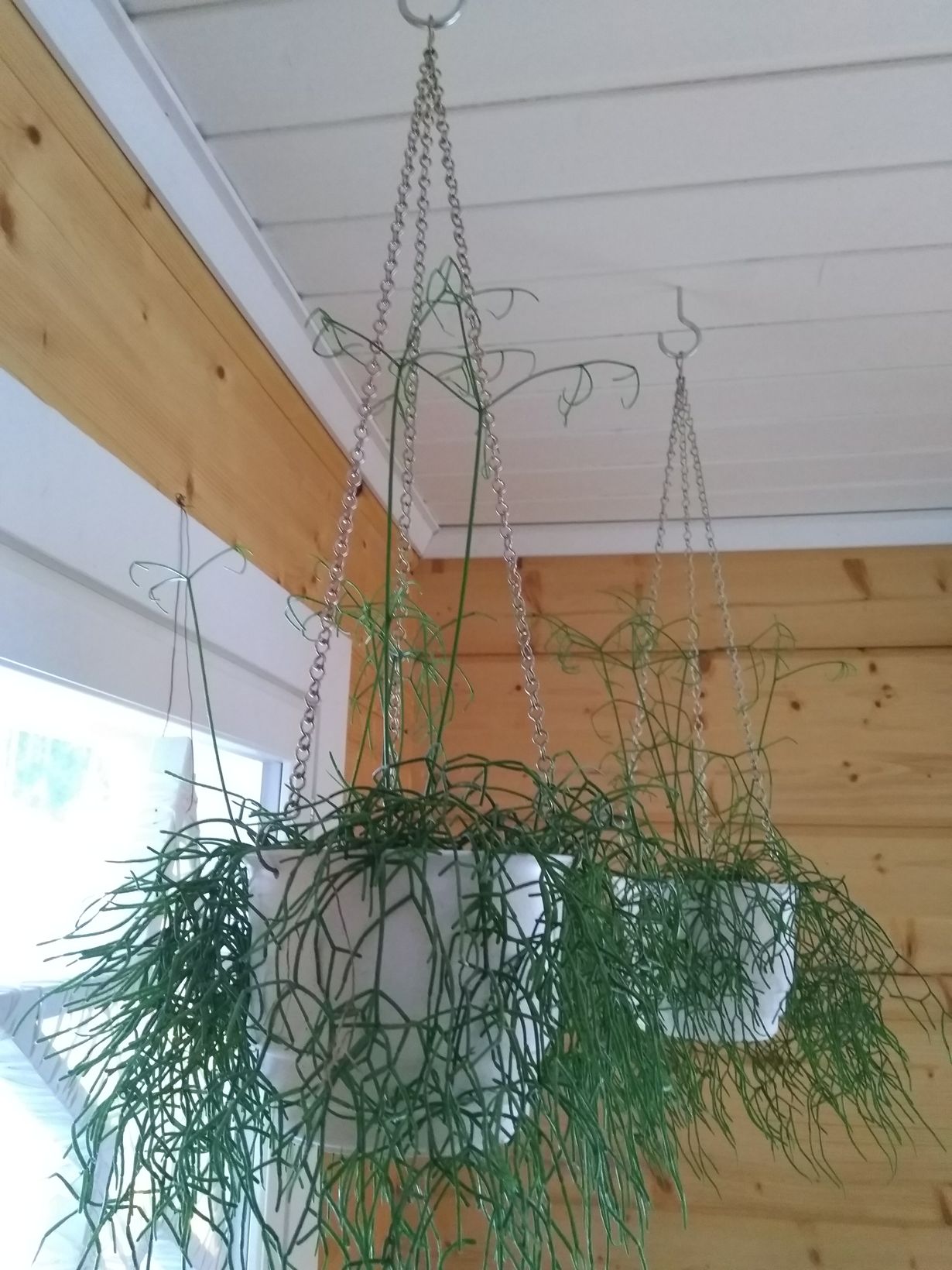 Työpaikaltani kirjastosta hävitettiin kaikki viherkasvit 90-luvulla. Sain kuitenkin tämän "kaktuksen" alkuja eläköityneeltä työkaverilta, joka oli aikoinaan ottanut alun kirjastossa olleessa isosta amppelista. Nyt olisi tarkoituksena palauttaa tämä kasvi kirjastoon. :)