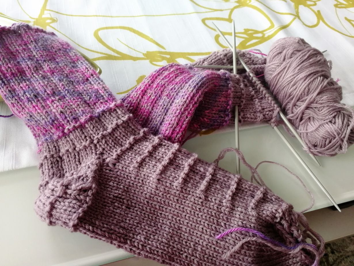 Kirpparikierroksella osui käsiin lankapussi, jossa näytti olevan kivannäköisiä villalankoja, joten pakkohan se oli pelastaa sieltä, ja alkaa kutoa niistä langoista sukkia.