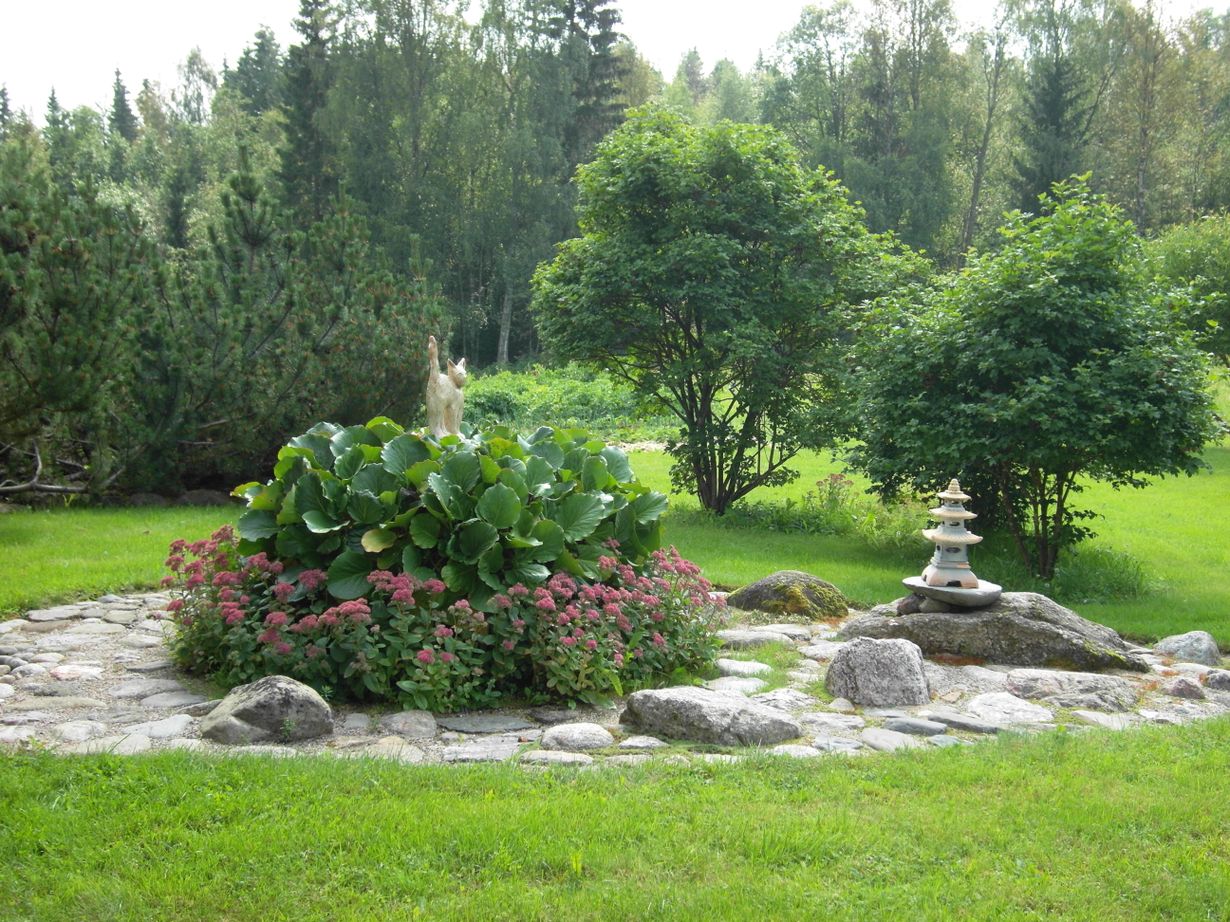 Itse tehty Kissa-puutarhaveistos on lasitettua keramiikkaa. Aiheena on oma kissa selkä köyryssä, pentukissa sirona ja hoikkana. Kissa on kohokuva ja ainoastaan tassujen alaosa on täysi, niinpä västäräkit teki jalkoihin pesänsä muutamana vuotena. Jouduimme pressuttamaan kaivonrenkaan ympärystän, ettei veistoksen mallina ollut kissa päässyt häiritsemään lintuja.