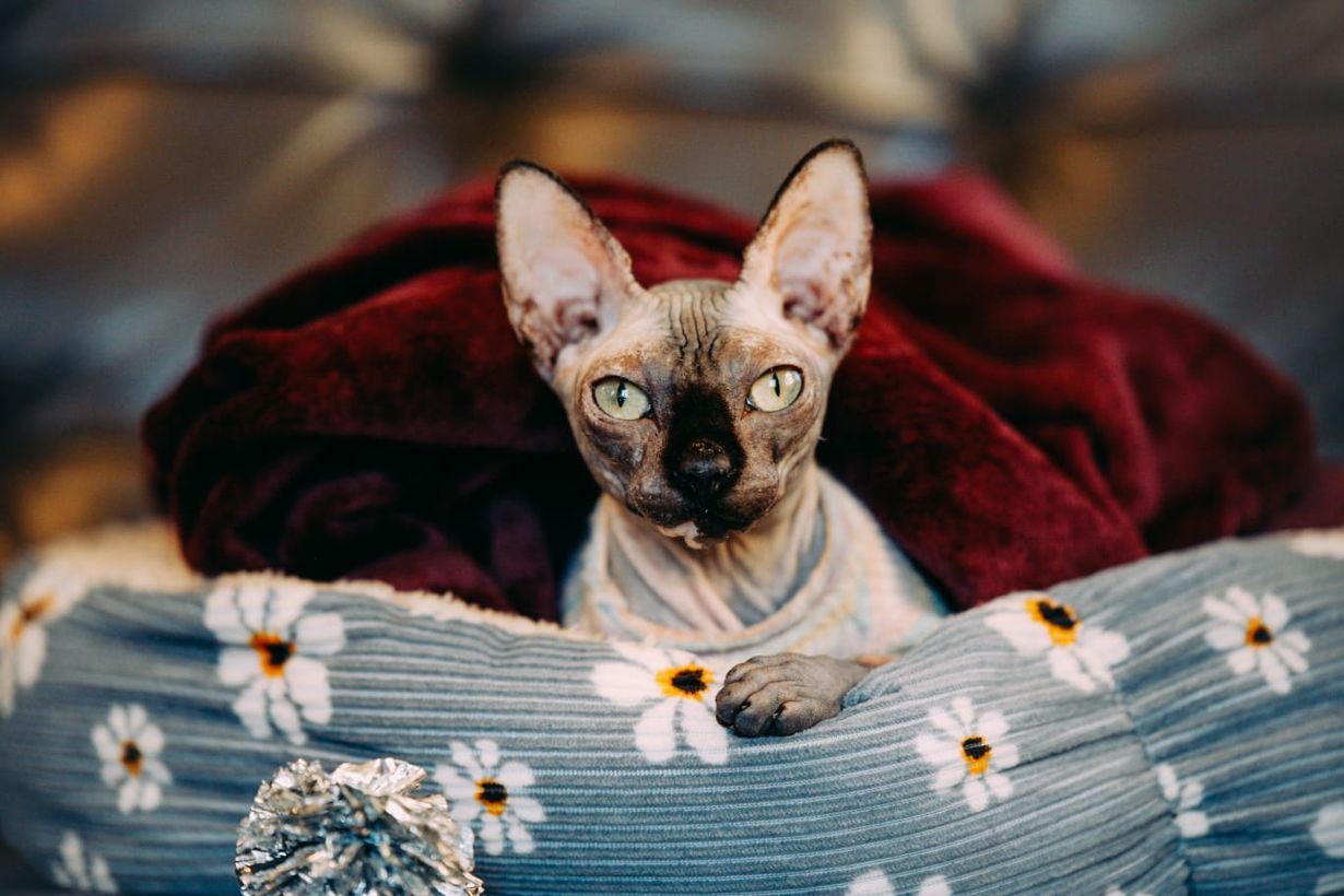 Kissa raidallisessa paidassa.