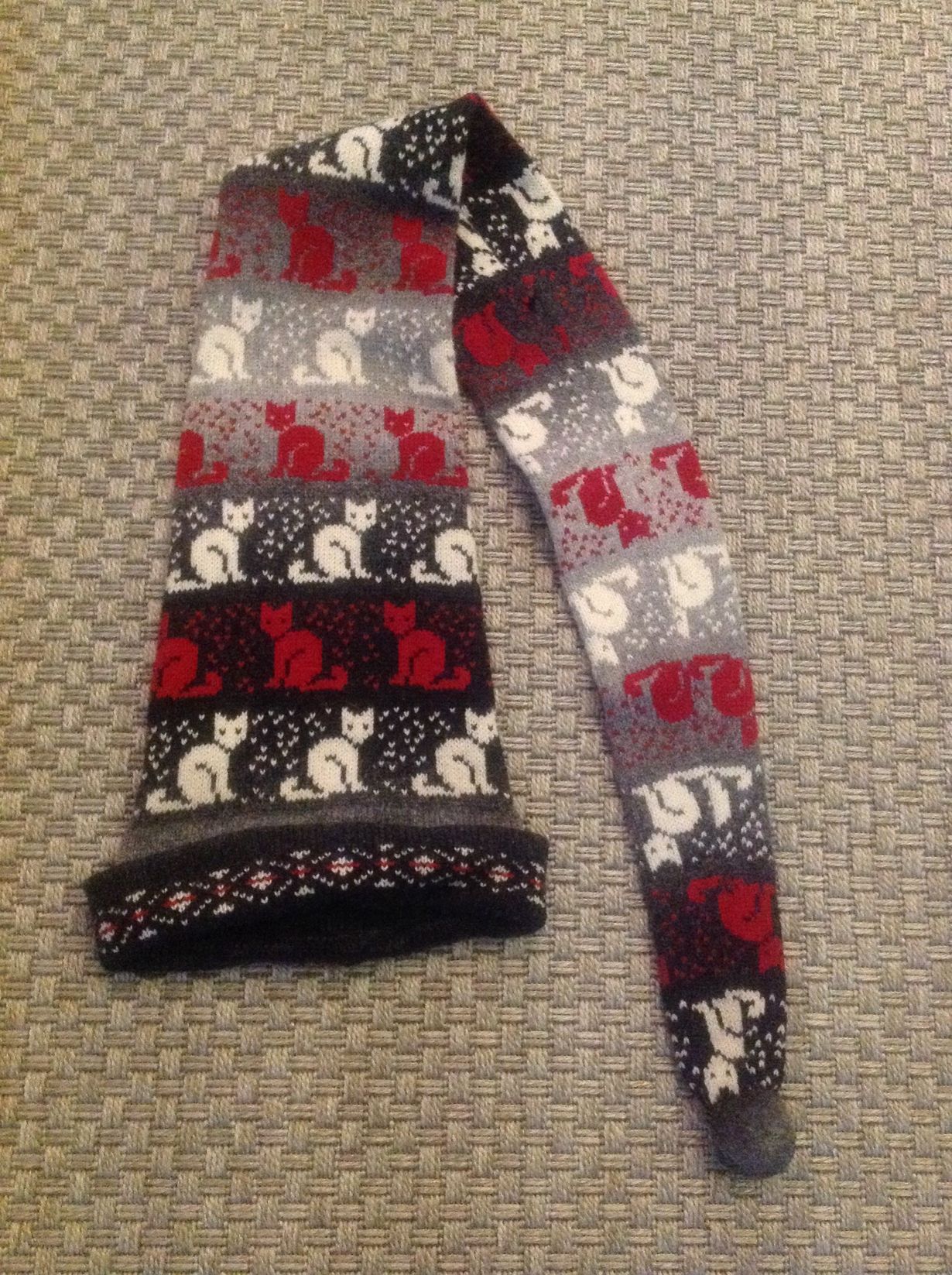 Tämä pitkä pipo lämmittää kätevästi myös kaulaani.