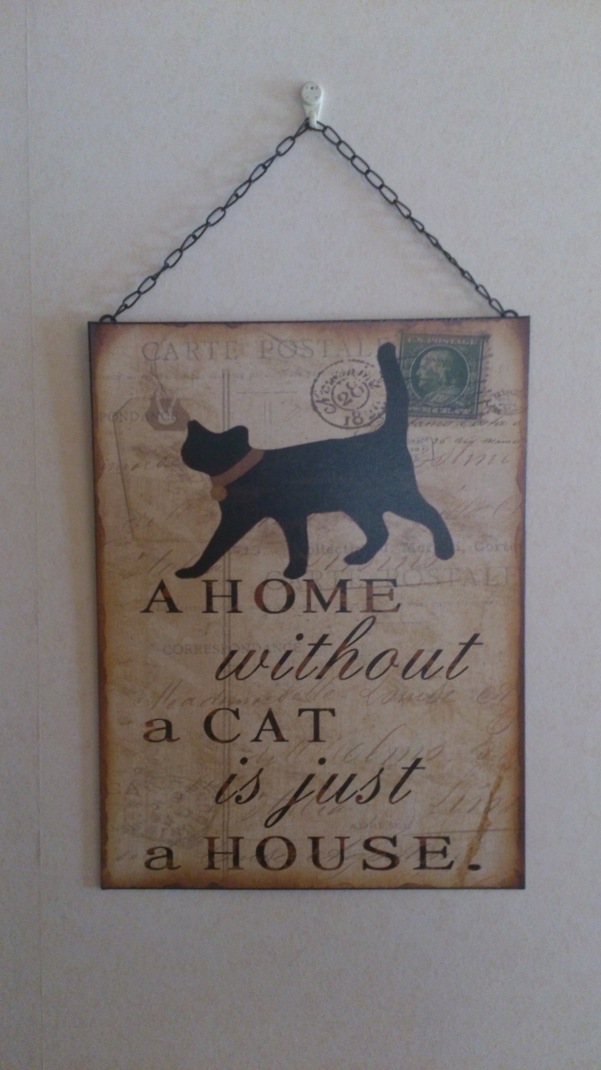 Tyttäreni hankki meille kissanpennun loppukesällä 2014. Kun hän muutti yksiöön kesällä 2016, pikku kissa jäi meille. Ennen muuttoaan hän toi tämän taulun minulle. Olemme kaikki kissarakkaita ja tämä pikku kissa on meille kaikille kovin rakas ja tärkeä. Päätin, että tästä eteenpäin kodissani tulee aina olemaan ainakin yksi tassuttelija...