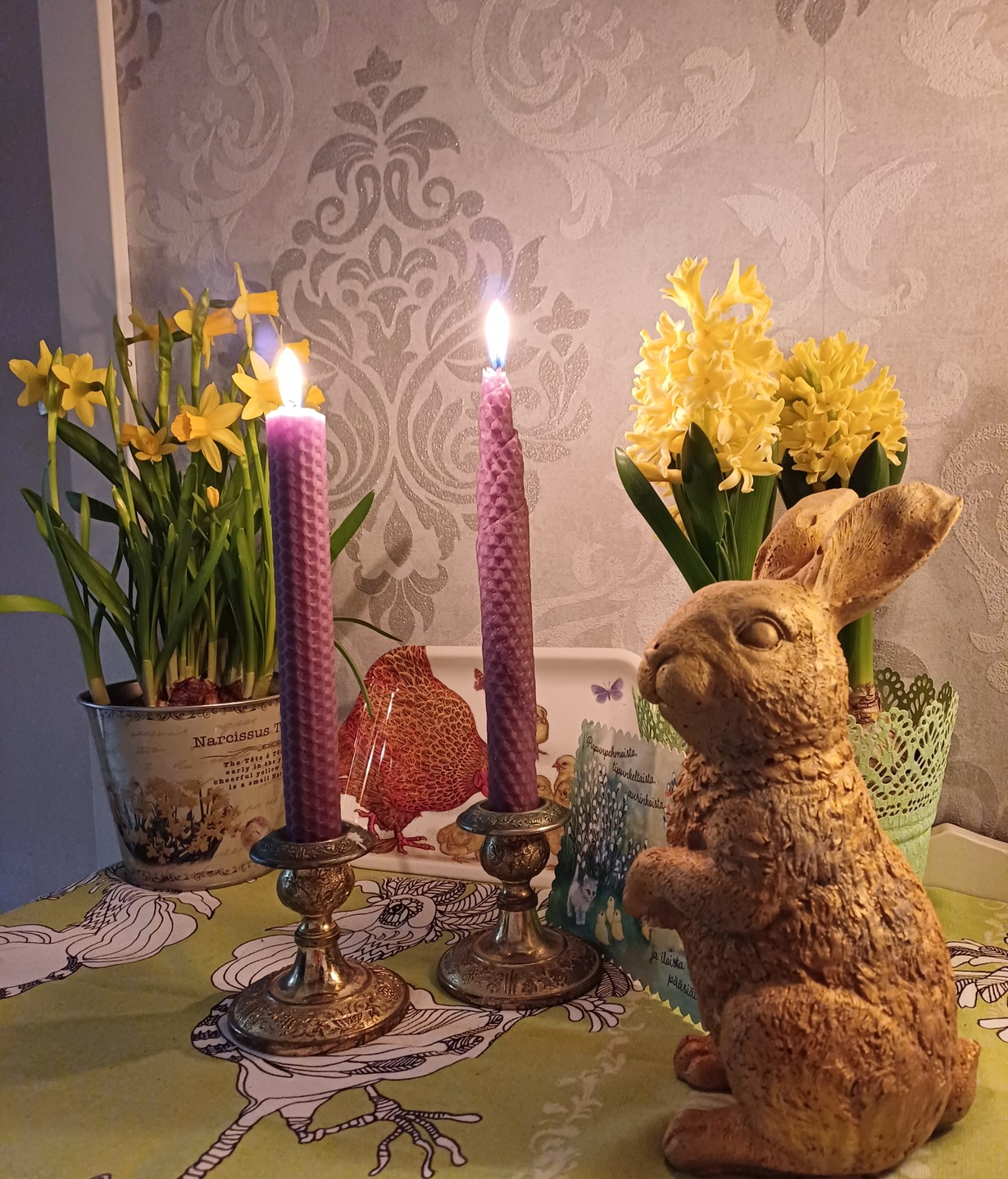Valoin pääsiäiseksi pupun betonista ja maalasin kultaiseksi - vihdoinkin kissankestävä pääsiäiskoriste, jota alati tuhmuileva kisumme ei pureskele rikki.