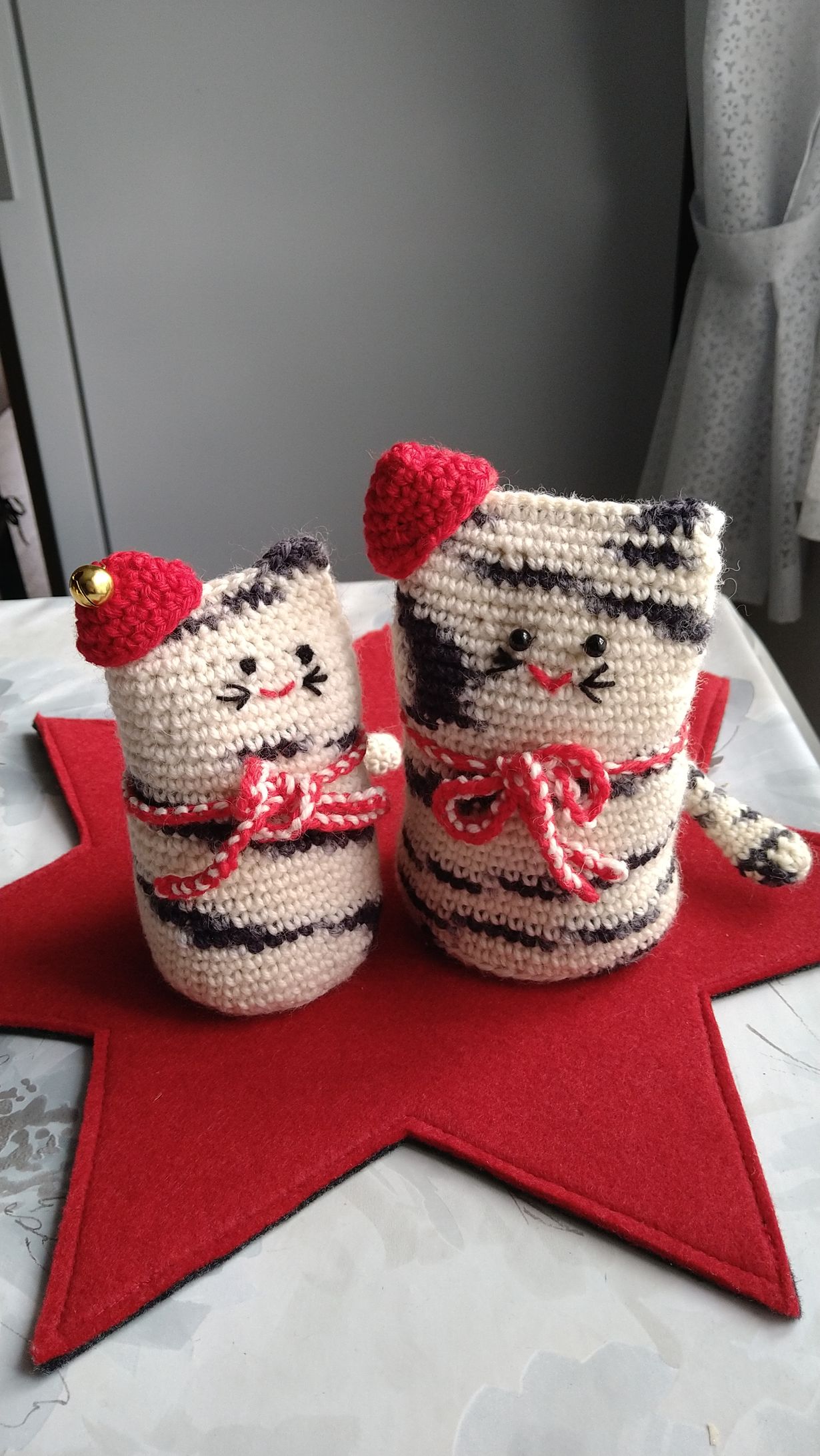 Lähetä kuvakisaan kuva lahjaksi tehdystä käsityöstä - voita Familonin pellavalakanat Kissat Anne 6.10.2025 klo 12:27 Itse virkatut lahjakissat odottavat paketointia joulupaperiin.