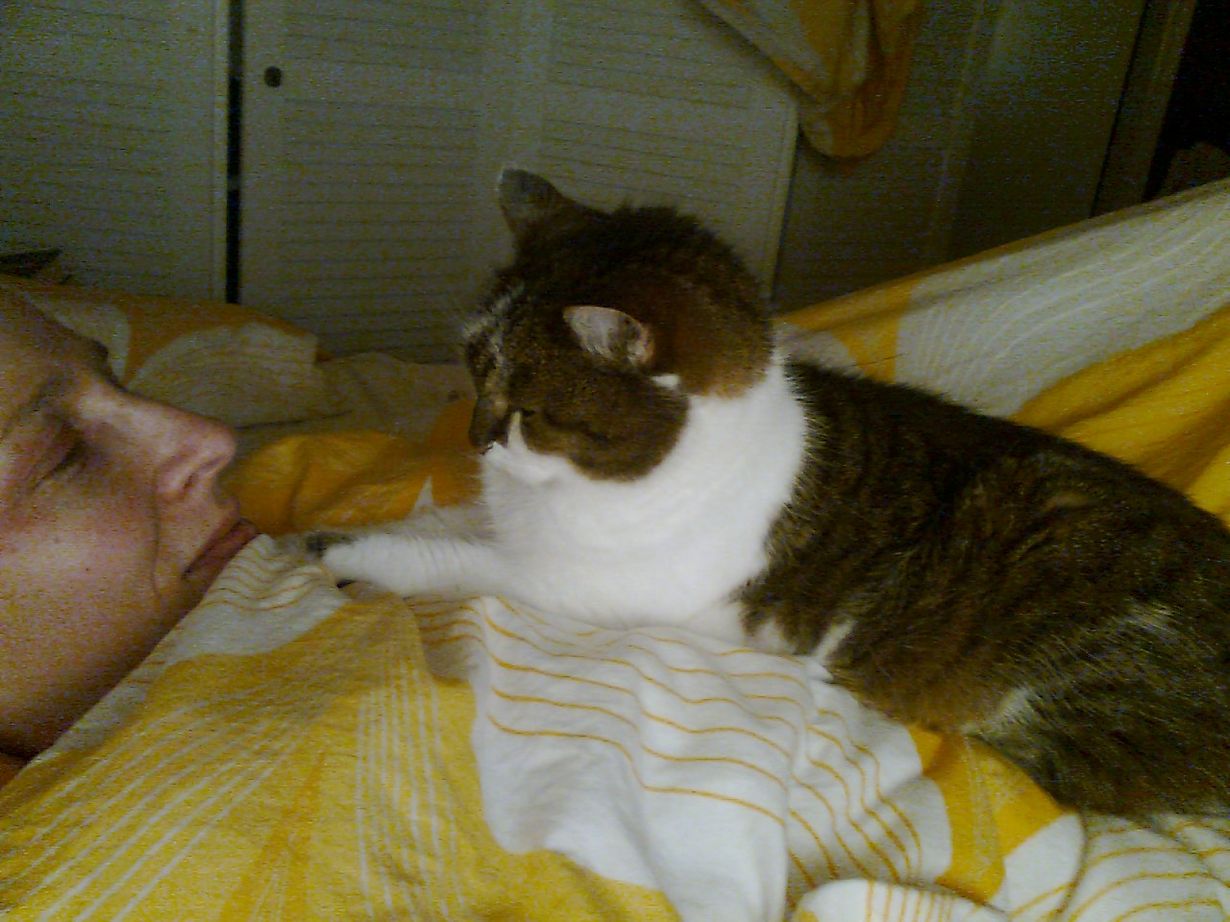 Illalla menen yksin nukkumaan, mutta aina aamulla kaveri löytyy hyvin läheltä - usein puoliksi naaman päältä. Jos 18 vuoden ajan ollaan aina herätty yhdessä.