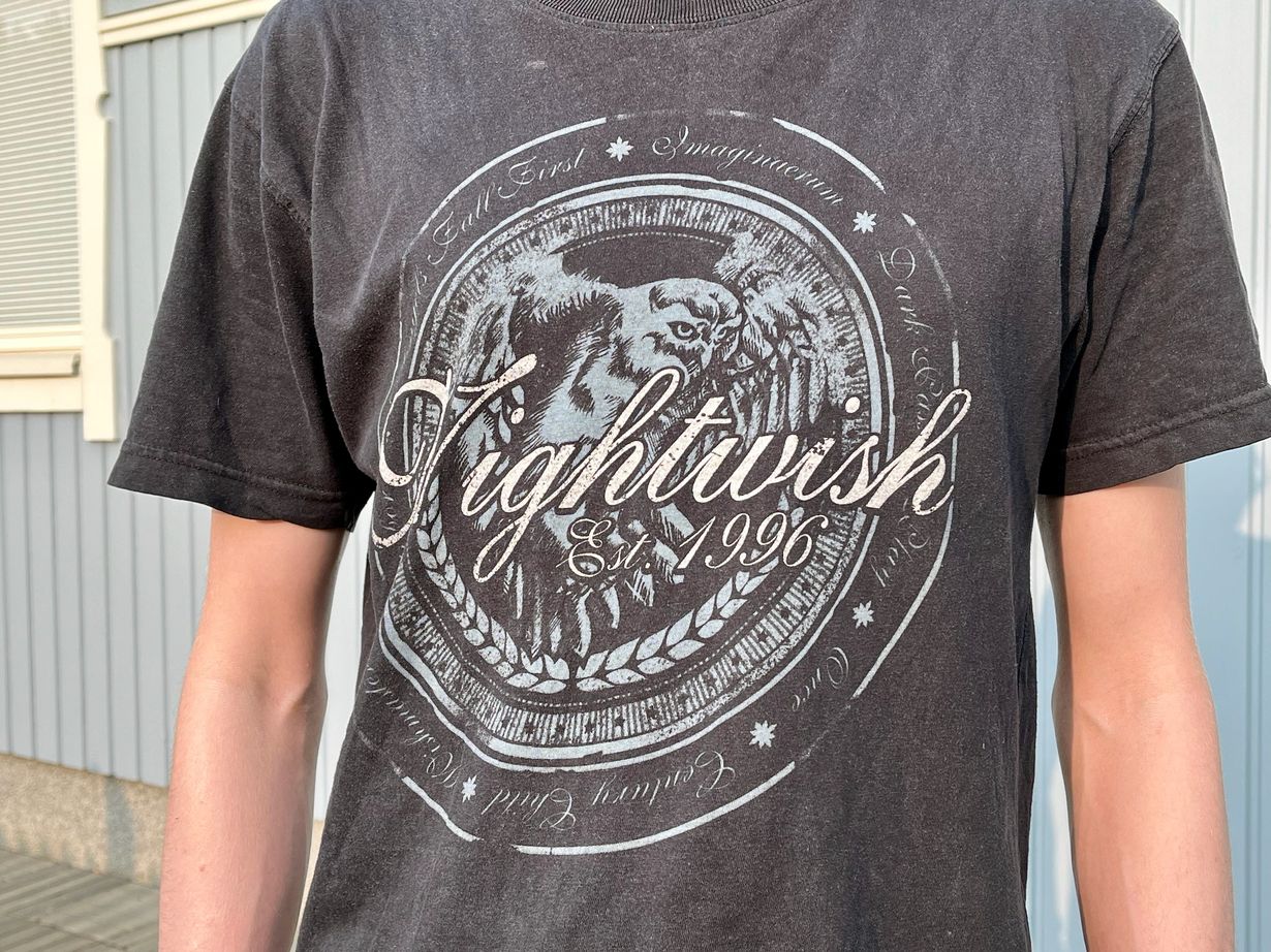 Poikani on fanittanut Nightwishiä jo pitkän aikaa. Yhtyeen kotipaikkakunnalla Kiteellä käydessämme piti tietysti hänelle hankkia Nightwish-paita. Paita on paljon käytetty ja jo vähän nuhjuinen, mutta tärkeä muisto lomamatkalta.