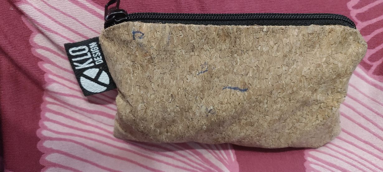 Ostin tämän kolikkokukkaron aikoinani Porin Jazzeilta. Kukkaro on tehty korkista. Tekijät , Klo Design, suosivat luonnon materiaaleja. Se kiinnosti.