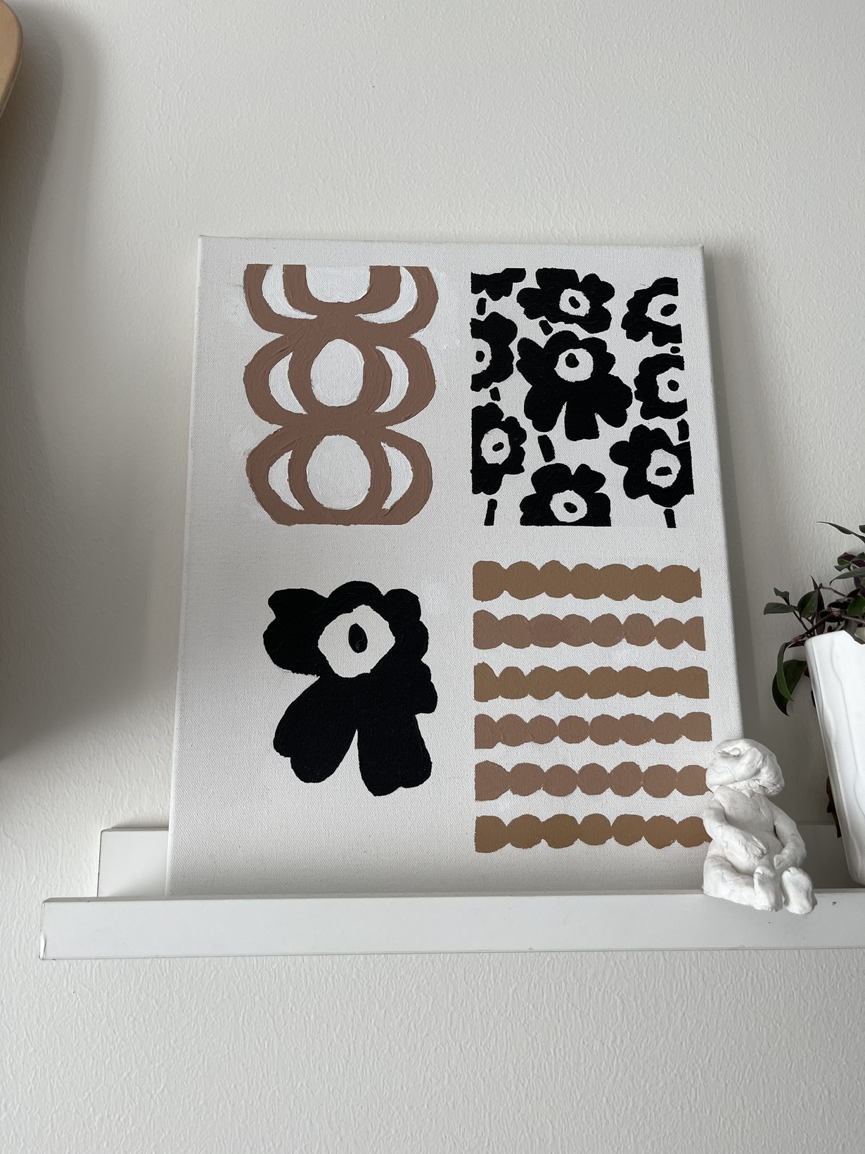 Lähetä kuvakisaan kuva taideteoksesta kodissasi- voita Moomin Arabian aakkosmukeja! Kodin eri kuviot eeeeellen 10.2.2024 klo 11:27 Lapsena maalaamani Marimekko-taulu.