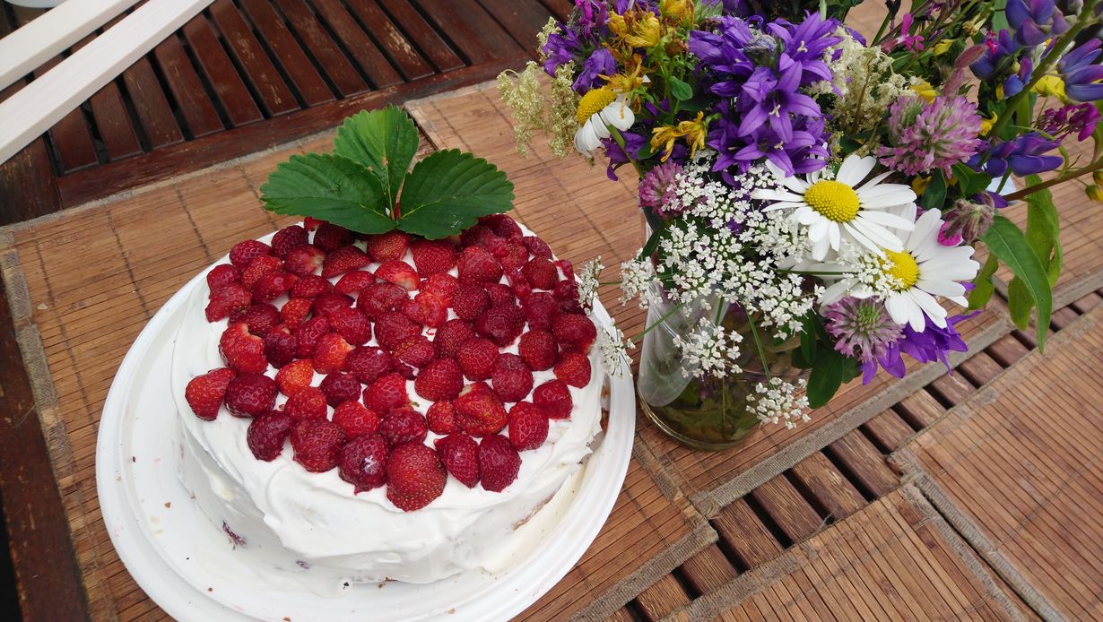 En ole mikään kummoinen leipuri, mutta mansikkakakun teen useasti kesällä. Tämä kuva antaa minulle toivoa, että mennään kohti kesää ja Ihania hetkiä läheistein kanssa mökille. Jaksaa, jaksaa
