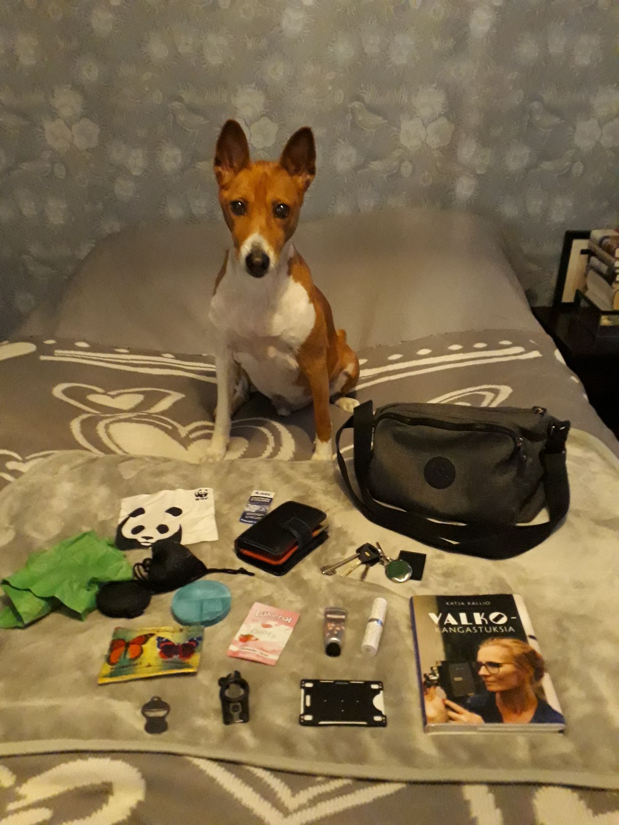Laukussa lompsan ja avainten lisäksi oltava aina jotain luettavaa. Yleensä löytyy myös suklaapatukka, mutta se tuli syötyä kotimatkalla.
