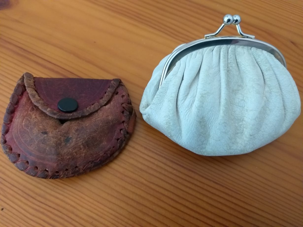 Pienempi,punainen kukkaro on kulunut v.1975 hankittu ensimmäiseltä ulkomaanmatkalta Dubrovinikista,säilytän siinä mökin vara-avaimia.