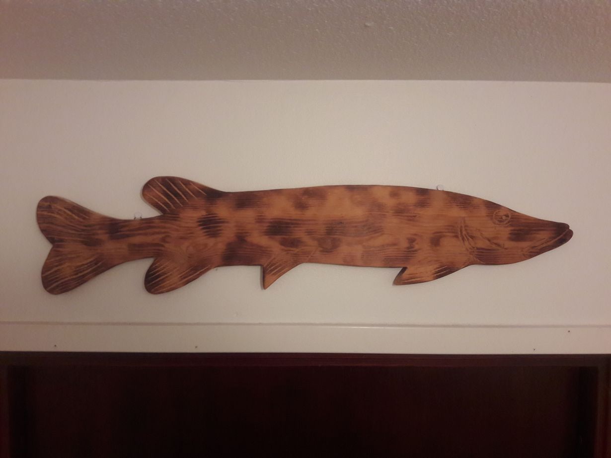 Sain Sampsa-pojaltani lahjaksi monia hienoja peruskoulun puukäsitöitä. Tämä komea hauki on tervehtinyt minua eteisen oven yläpuolelta kohta kolme vuosikymmentä.