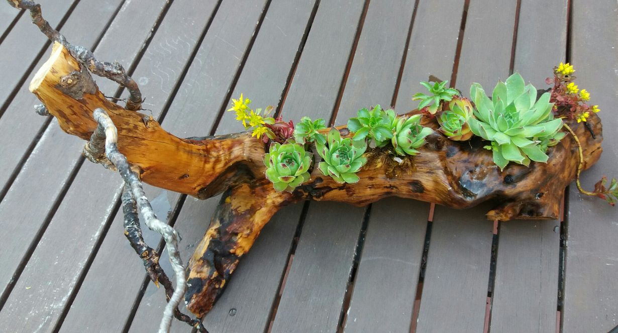 Korona karanteenissa en ole päässyt kukkakauppaan niin etsin metsästä kaatuneen puun juurakon johon porasin n,4cm kolot joihin laitoin omasta pihasta mehitähteä ja maksaruohoa.