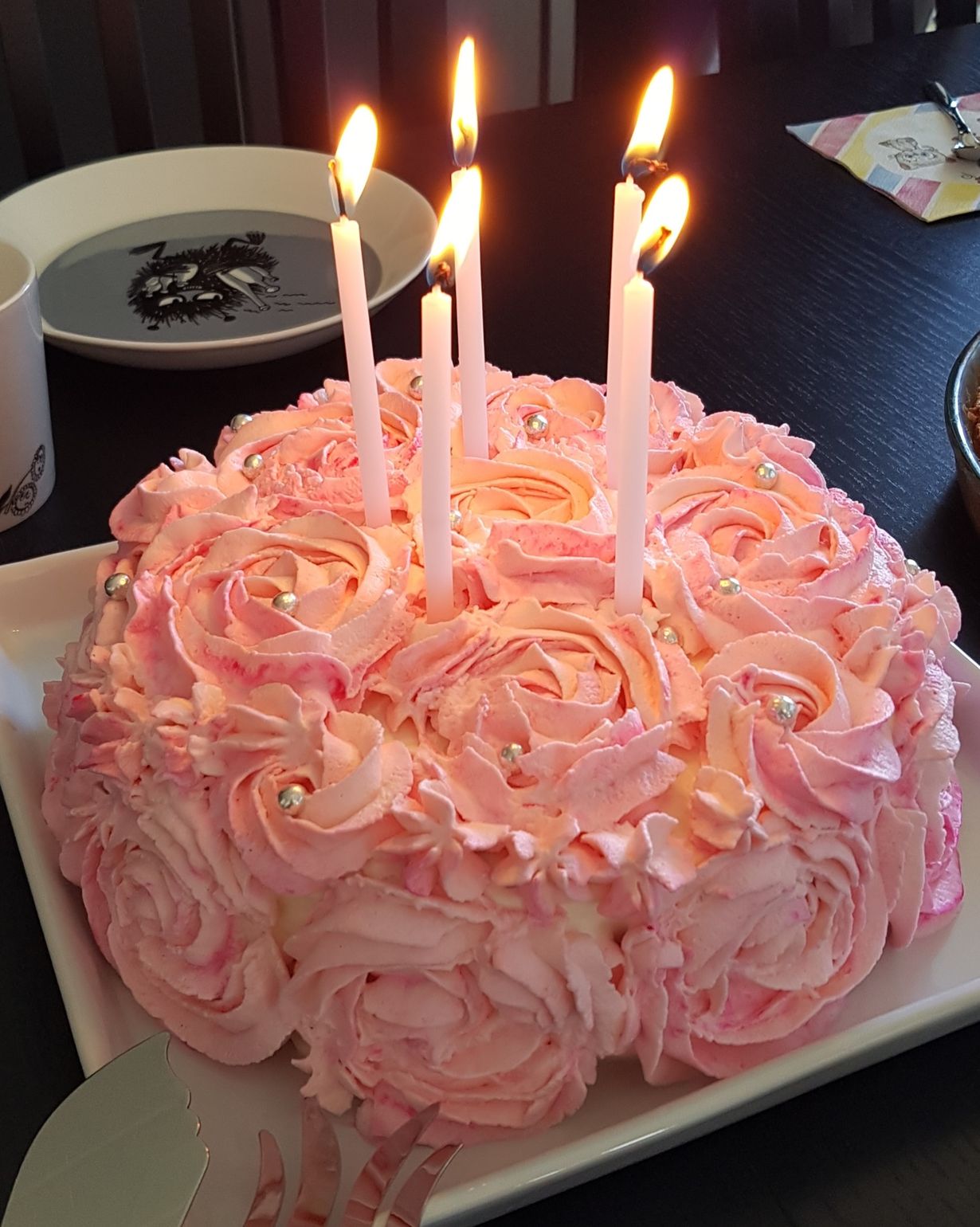 Lapsenlapseni täytti 5 vuotta koronakeväänä 2020. Tyttö oli liikuttavan onnellinen sekä kakusta, että vähäisestä vierasmäärästä, läsnä olivat vain isovanhemmat.