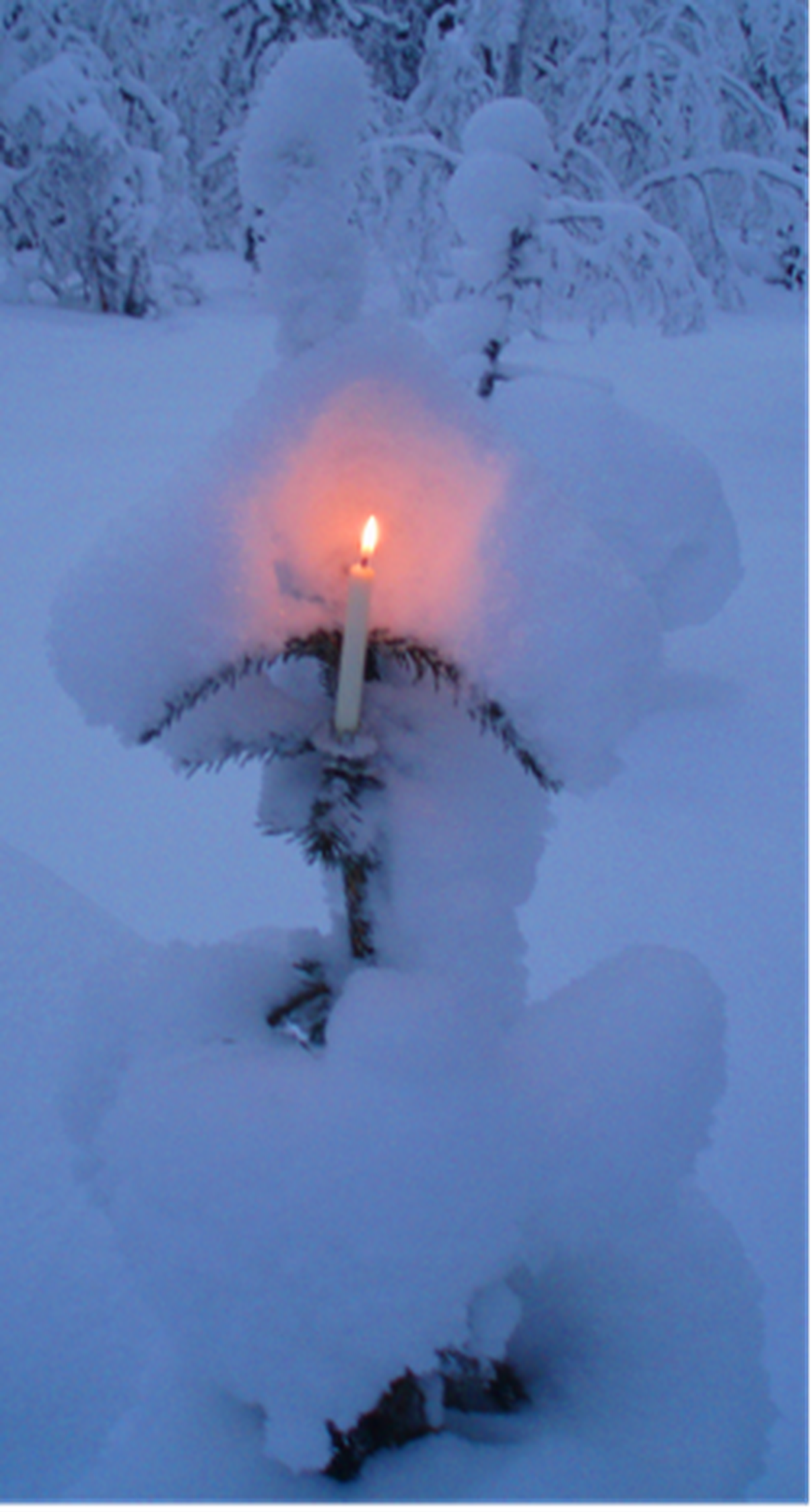 Kuva on otettu tammikuussa 2011 Kemihaaran erämaassa, lähellä Korvatunturia. Halusin nähdä miltä lapsuudesta tuttu joulukynttilä näyttäisi korpikuusessa.