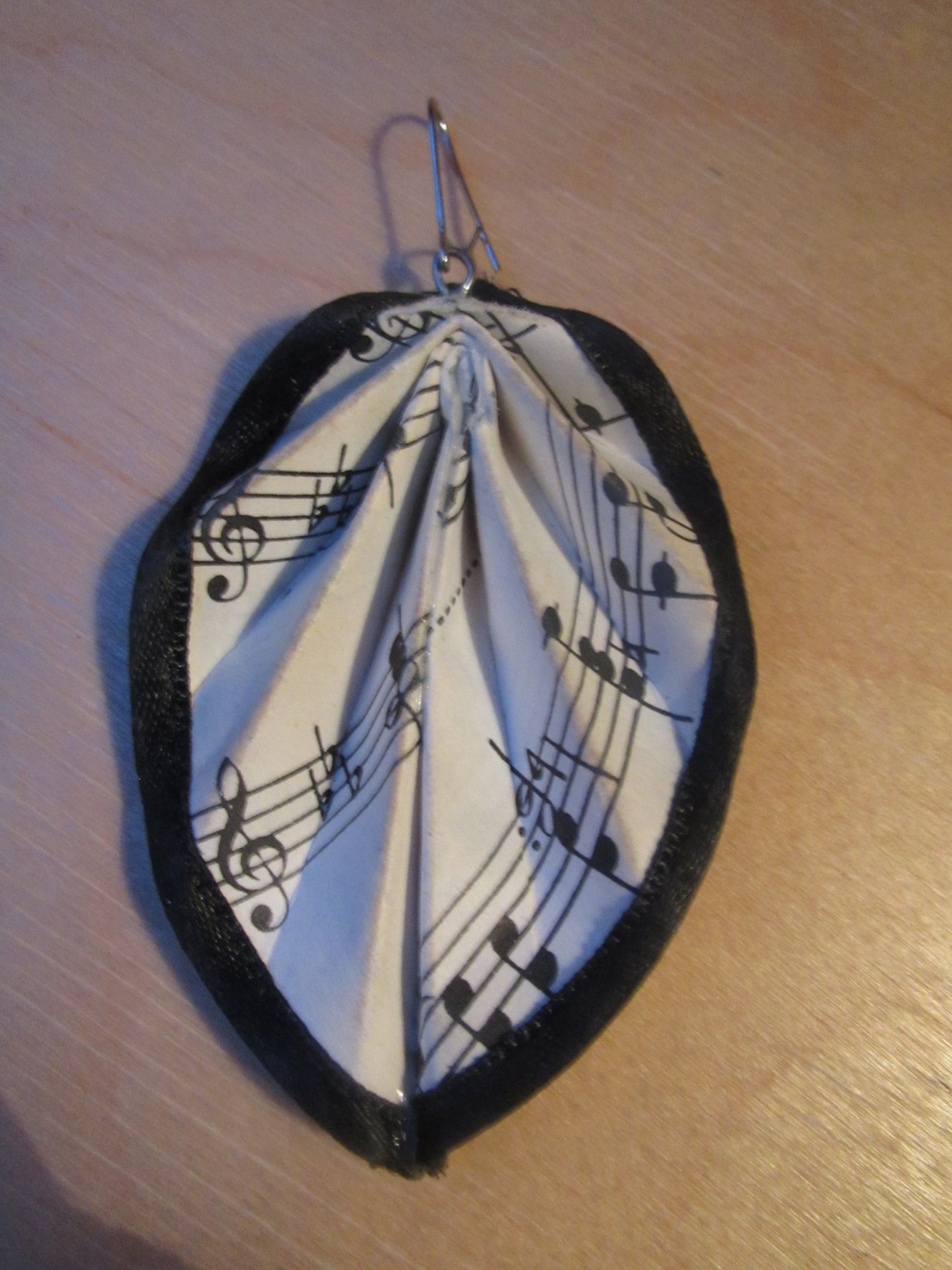 Ihanimmat korvakoruni ovat First Crush -korut, ekologiset korvakorut, jotka on taiteltu kierrätetystä paperista. Korut on tehty 1930-luvun nuottivihon sivusta.