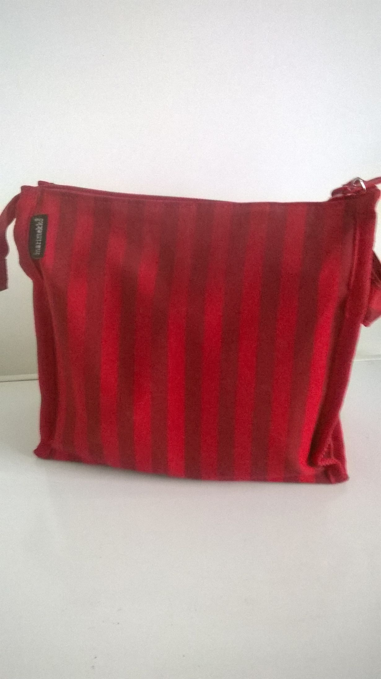 Sain tämän kauniin, punasävyisen Marimekon meikkilaukun ulkomailla asuvalta tyttäreltäni vuosia sitten. Pidän siitä kovasti ja se kulkee mukanani kaikilla matkoilla, myös mökkimatkoilla.