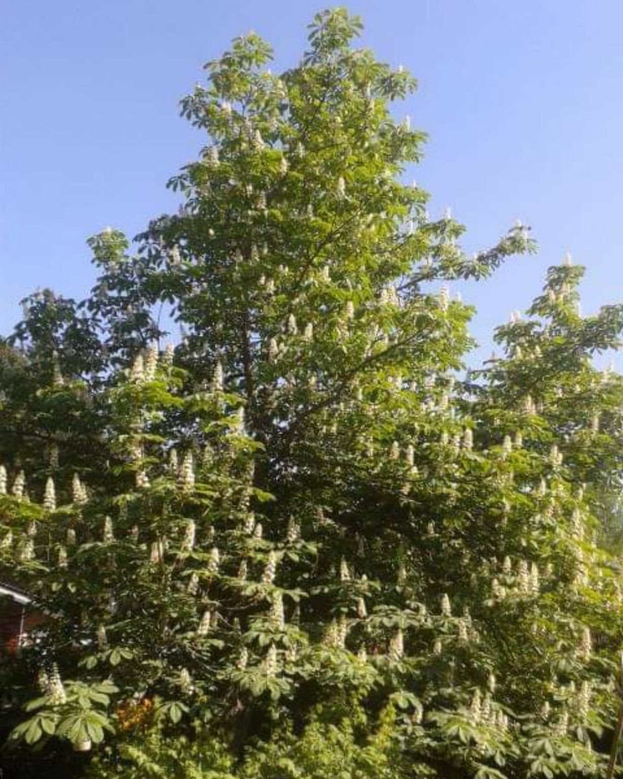 Tämä kaunis hevoskastanja valtaa suuren osan meidän pihastamme. Toki sen oksat ulottuvat myös naapurin puolelle, mutta on se vaan niin kaunis. Syksyisin se onneksi pudottaa lehtensä lähes samanaikaisesti.