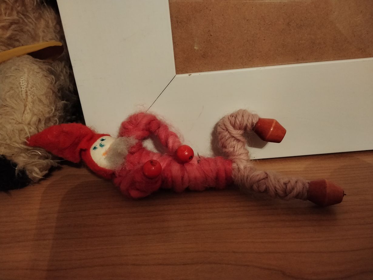 Poikani tekemä kotitonttu joka on vuosien varrella aina ollut muutossa mukana. Varmaan yli 20v sitten tehty ja aina on paikka löytynyt