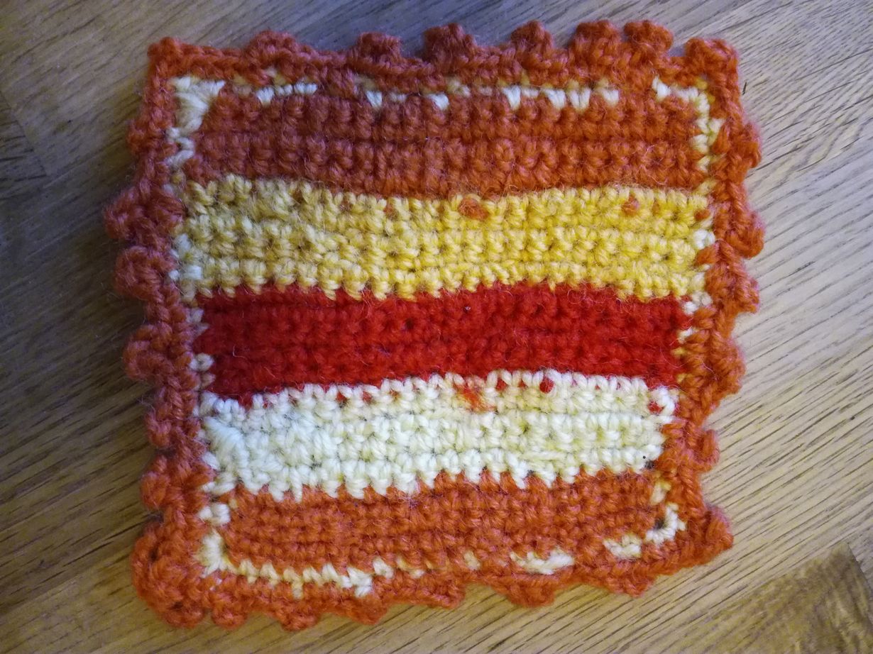 Mieheni virkanut patalapun koulussa n 50v sitten. Hauska muisto säilynyt vuosia.