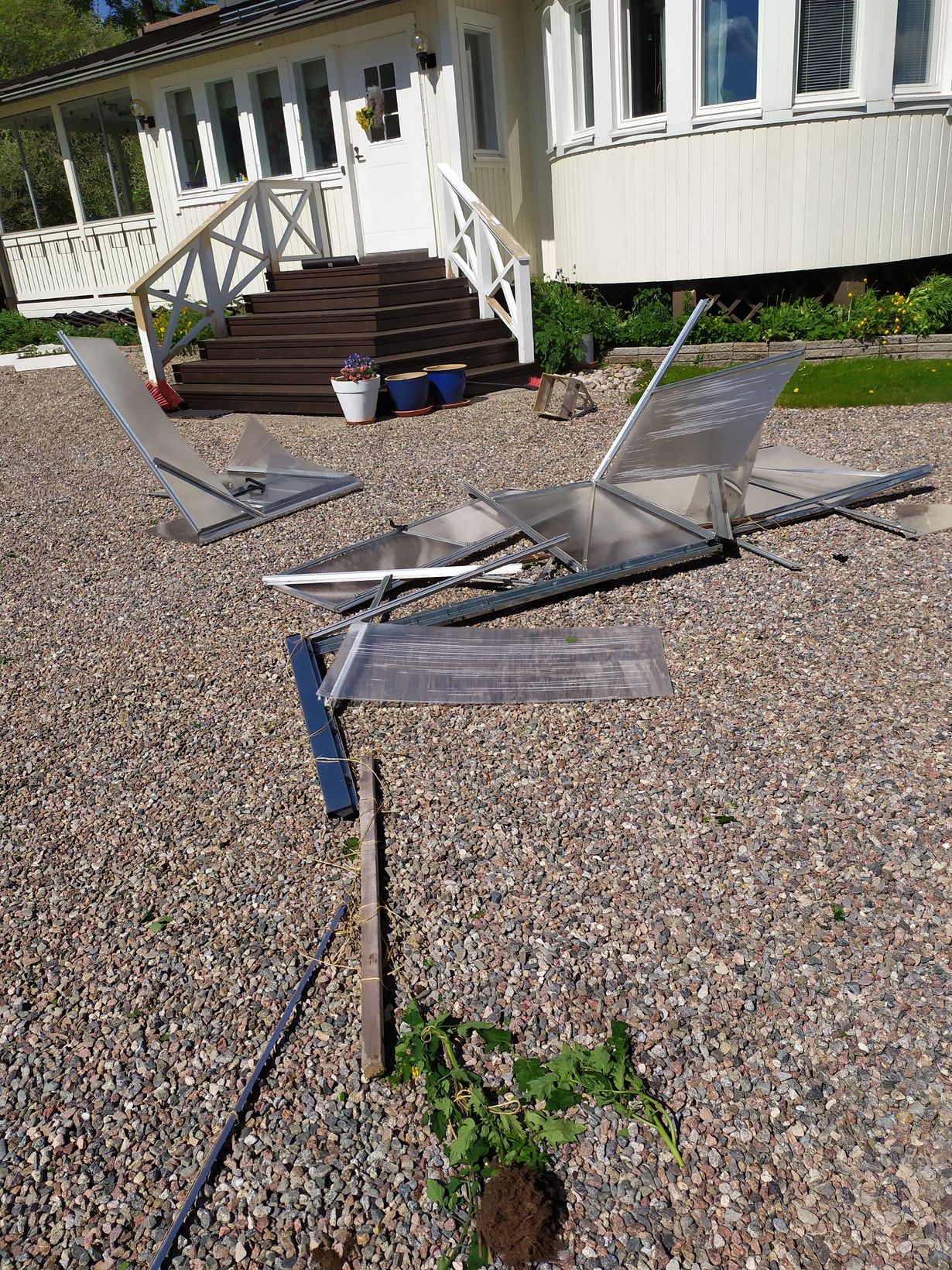 Olin juuri saanut tuettua tomaatin- ja kurkuntaimet sievään, pieneen kasvihuoneeseeni, kun lähdin ruokailemaan. Ulos tullessani parinkymmenen minuutin päästä kasvihuoneen paikalla oli vain perustukset, kesämyrsky oli lennättänyt huoneen ja kasvit pitkin pihaa.