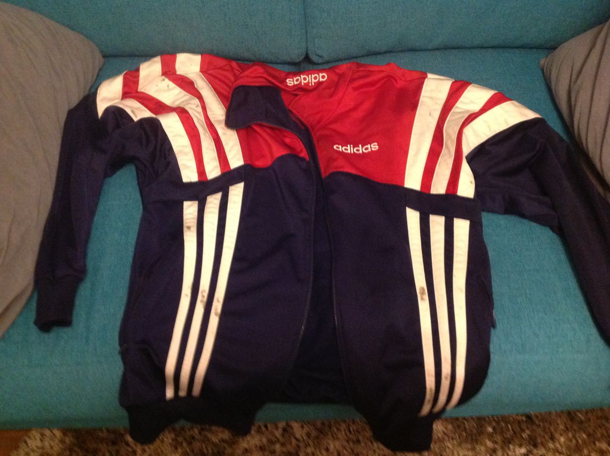 Adidaksen verkkatakki yli 20 vuoden takaa. Vieläkin ehjä, monta uudempaa on jo rikki ja lumppu keräyksessä. Kestänyt kovemmankin kulutuksen vetoketjua myöten. Ps. En ota risteilylle kuitenkaan mukaan.