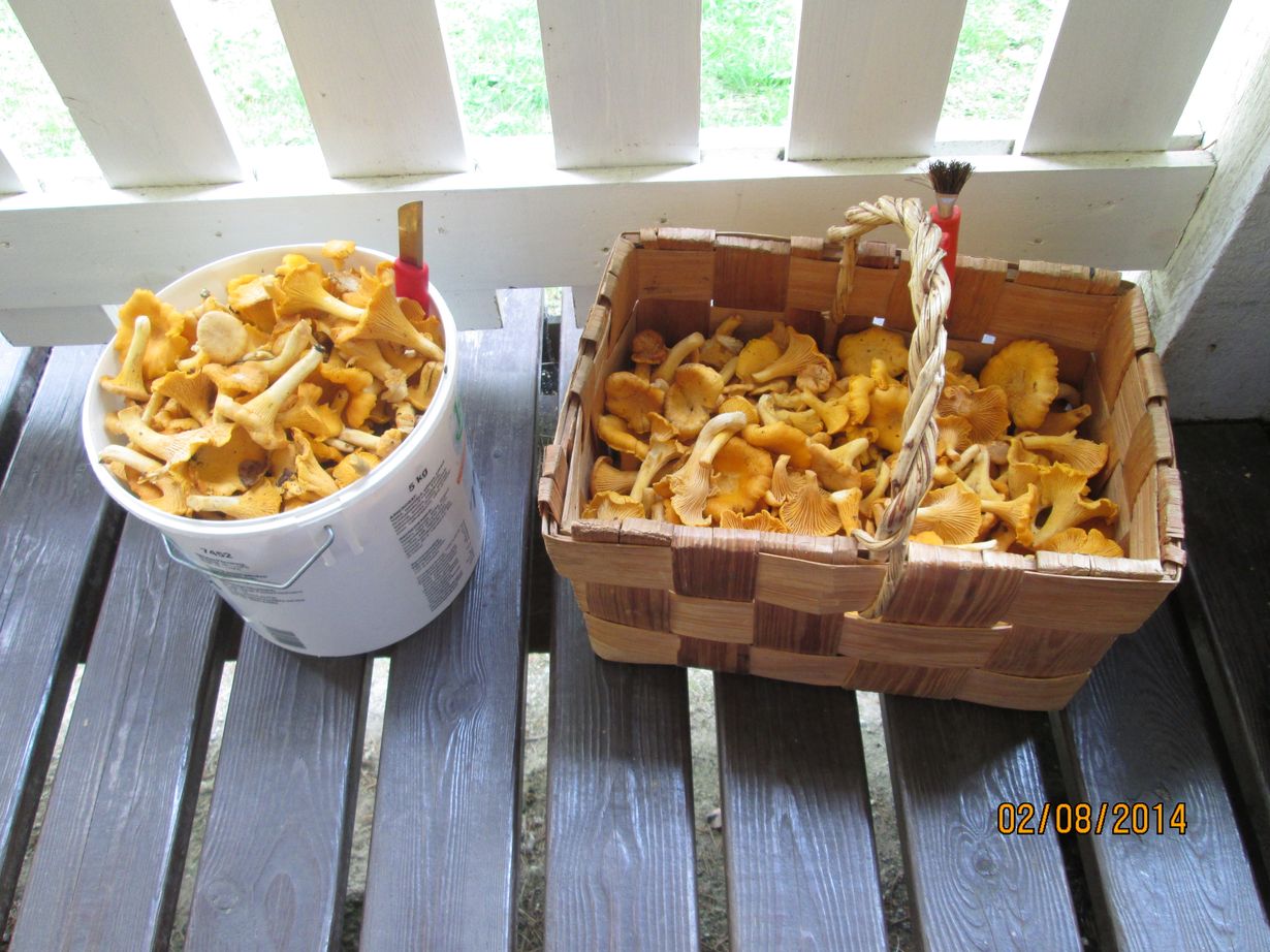 Läksimme mökillä Hirvensalmella katsomaan tilannetta metsässä ja pian olikin käytävä hakemassa koppa ja sanko kun niitä herkkuja alkoi näkyä kaikkialla.