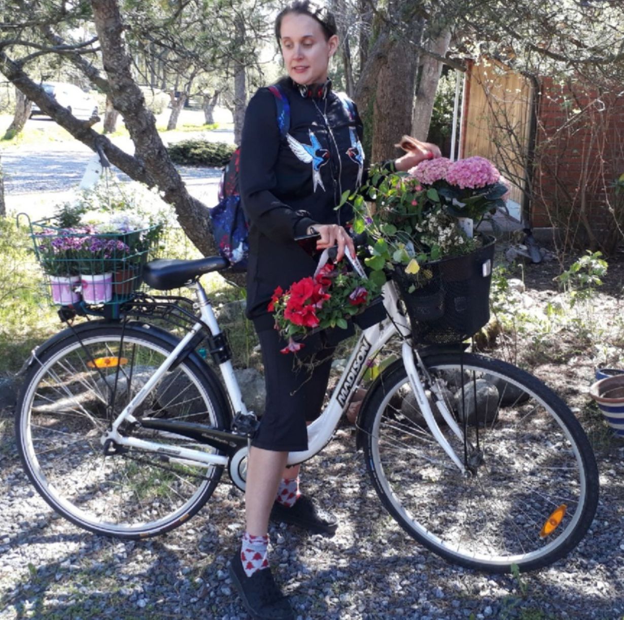 Tyttäreni "kipaisi" puutarhassa. Viiletti pyörällä pitkähkön matkan kukkalastissa. Kukat olivat ihana lahja äidille. Niistä iloa koko kesäksi.