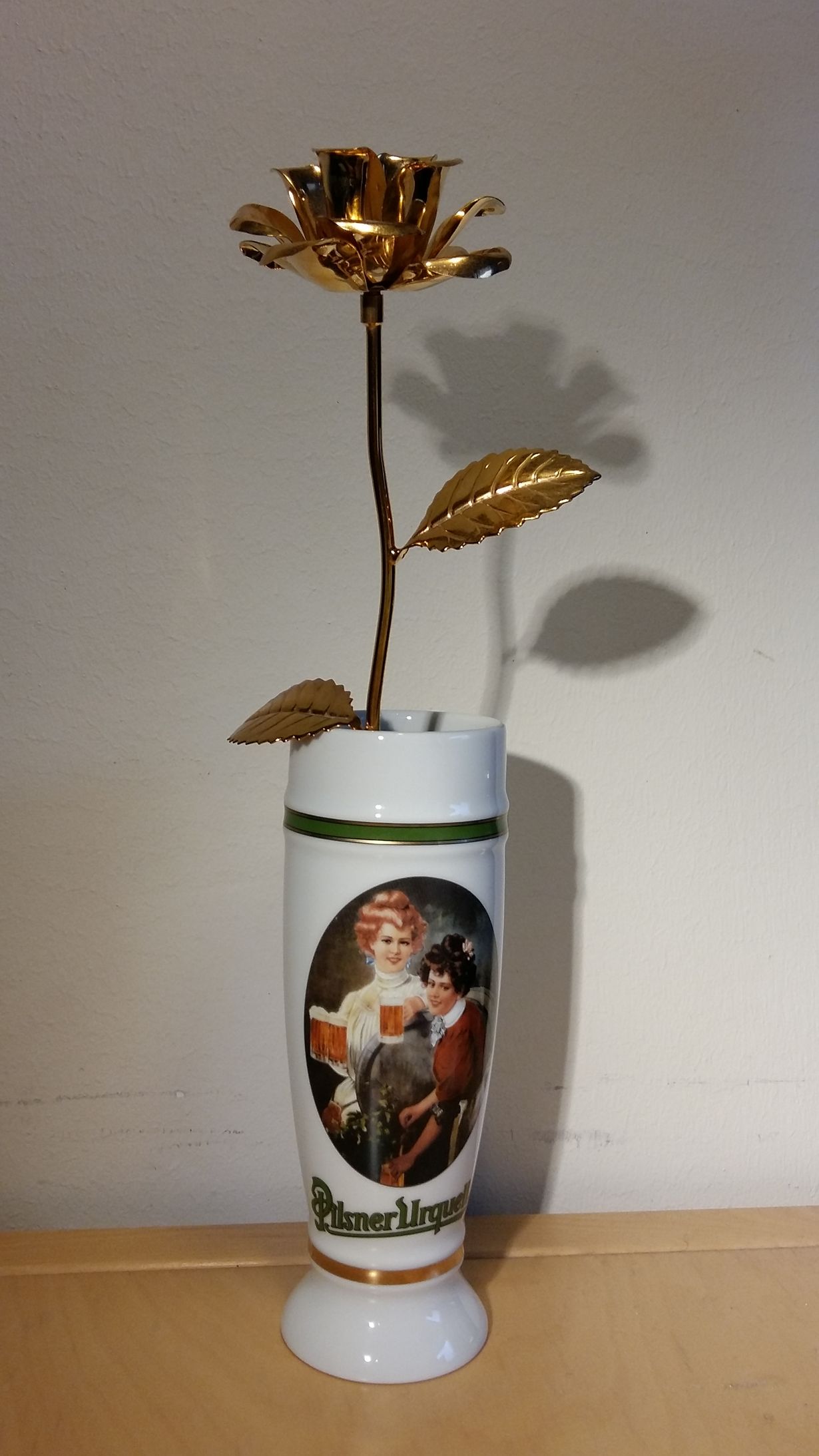 Ostin matkamuistokitsiä Pilsenistä Pilsner Urquellin panimosta mutta se ei palvellut hyvin oluttuoppina toisin kuin kuvasta voisi päätellä. Äidin ostaman ylioppilasruusun maljakkona se on kyllä ihan nätti.