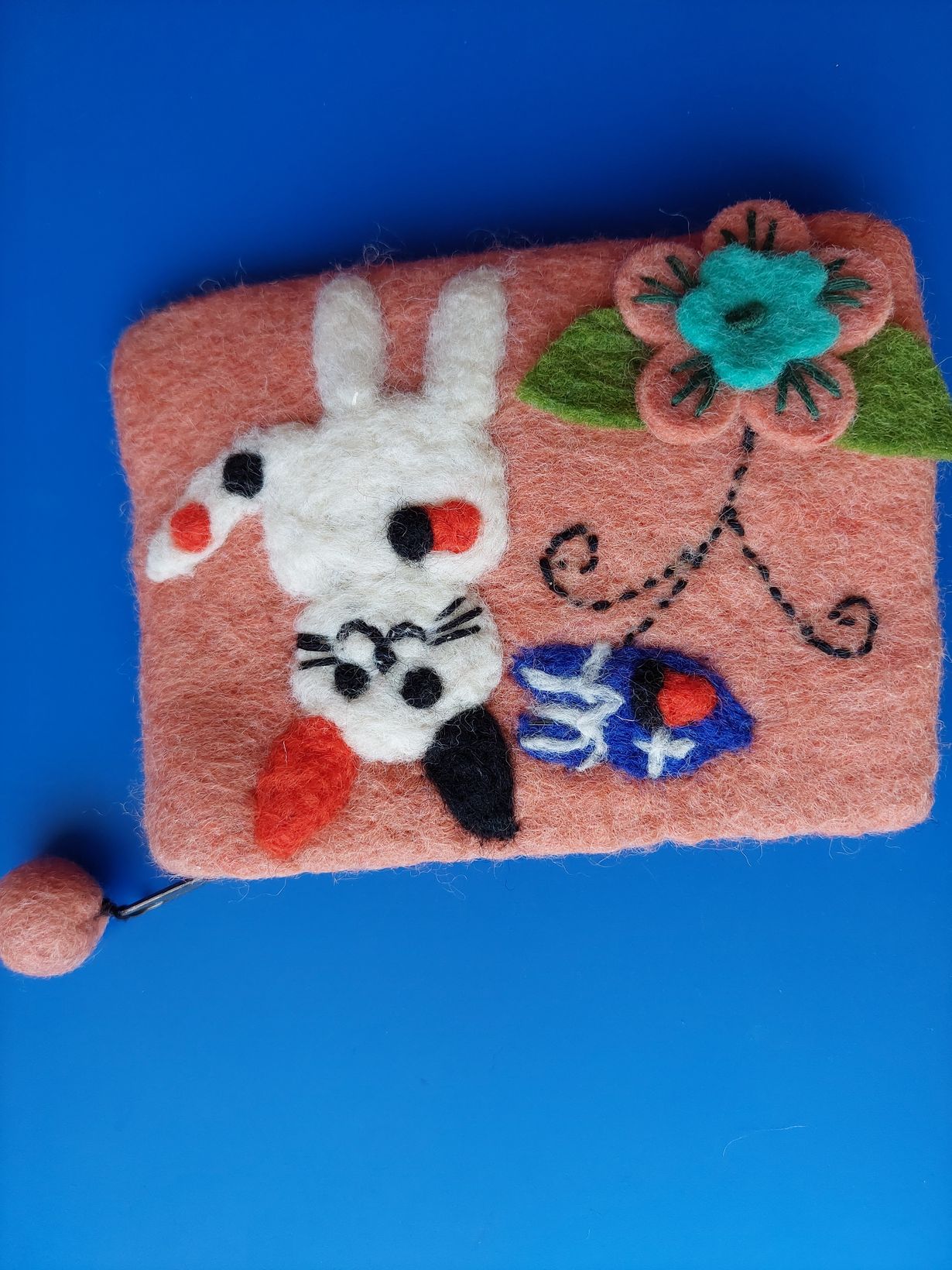 Sain ystävältäni Nepalissa tehdyn kukkaron.Sain valita erilaisista aiheista ja otin kissan,koska meillä on ollut joskus valkea kissa.