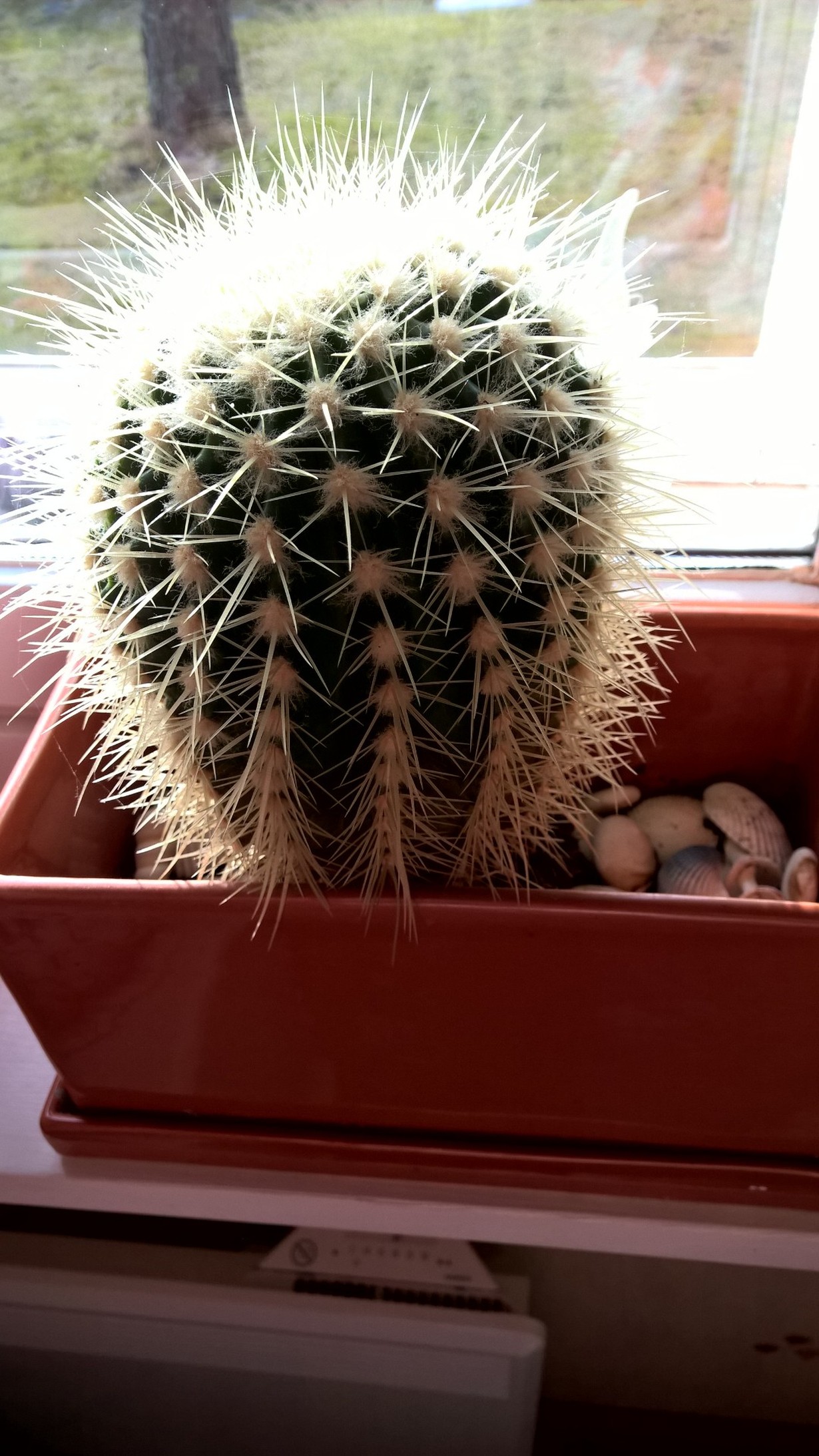 Tämä kaktus on vanhapoika olen joskus ostanut sen itse , on ainakin 15 v vanha on niin helppo hoitonen ja purkki on minun värimaailmani pidän oransista.