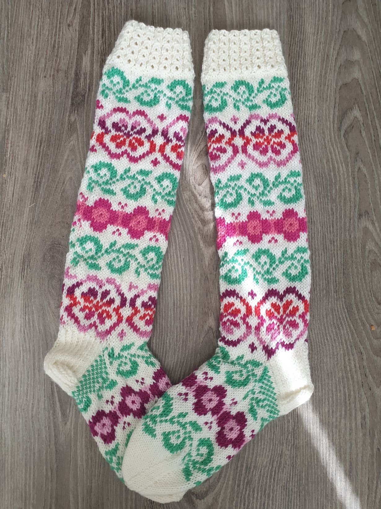 Neuloin viime talvena elämäni ensimmäiset kirjoneulesukat. Yllätyin siitä, ettei se ollutkaan niin vaikeaa, kuin olin luullut. Ihan kauniit niistä tuli!