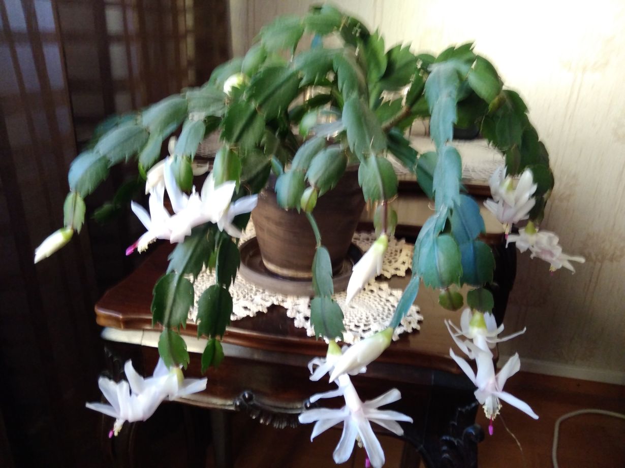 Muutama vuosi sitten irrotin saamastani jouluasetelmasta pienen alun ja istutin sen uudelleen. Nyt se on jo kukkinut kauniisti muutaman kerran. Tällä hetkellä kasvi on jo vähän kasvanut mutta ei kuki juuri nyt joten lähetin kuvan kukkivasta.