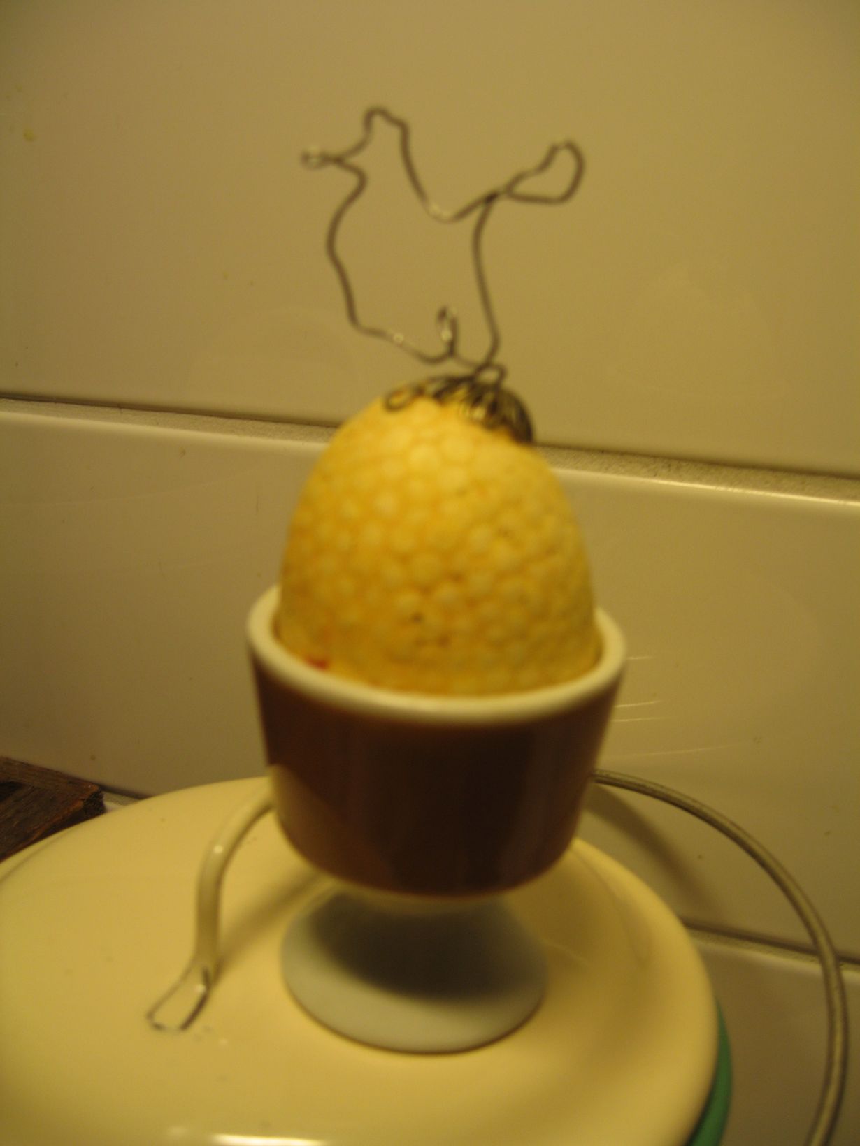 Tämä ihana arki: pääsiäistipu tai -kukko Kukko hyppäsi munan päälle. 3.3.2014 klo 8:51 Väänsin rautalangasta Kukon koristeeksi vanhaan munakuppiin mjaana