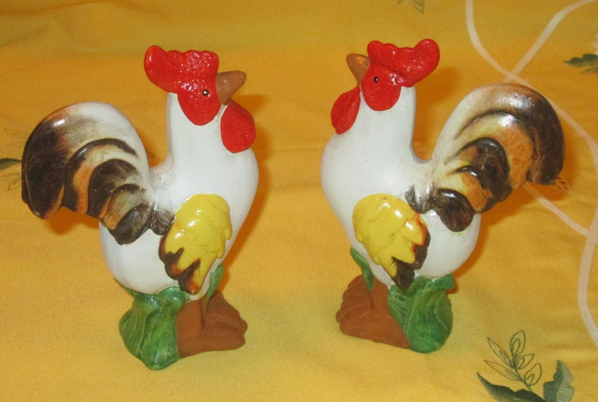 Hetken mielijohteesta kirpputorille poikkeaminen valpastutti pääsiäisen alla huomaamaan kukot. Savikukkojen alkuperä kiinnostaa. Pohjasta löytyi alkuperäinenkin hintalappu 25 SEK.