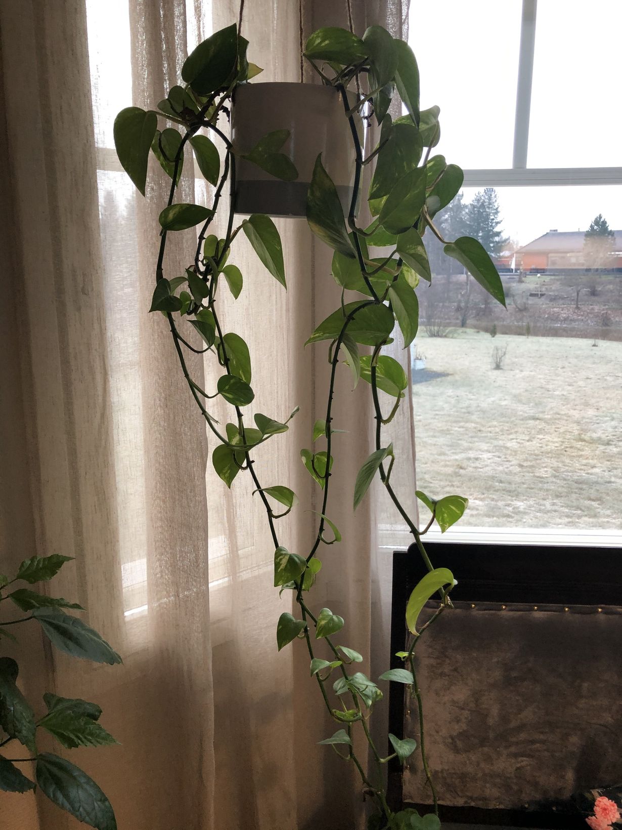 Muutin mieheni kanssa 17 vuotta sitten yhteen. Mieheni oli pyytänyt äidiltään kukan uuteen asuntoomme. Kukka oli pieni monet vuodet, ja tuli mukana monessa muutossa. Nyt sain kasvin vihdoin kasvamaan ja voimaan hyvin näin monen vuoden jälkeen.