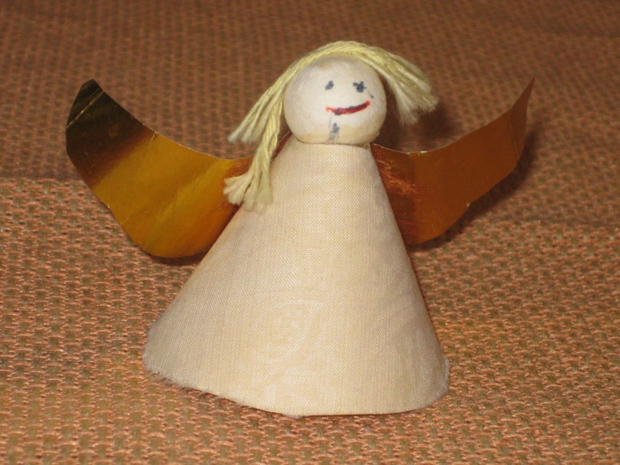 Esikoispoikani kolmevuotiaana tarhassa tekemä pieni jouluenkeli lennähtää joka vuosi ensimmäisenä adventtina kirjahyllymme reunalla ja levittää sieltä joulun ajan tunnelmaa aina loppiaiseen asti. Enkeli lienee syönyt makoisia joulutorttuja suun seutuvilla näkyvistä merkeistä päätellen.