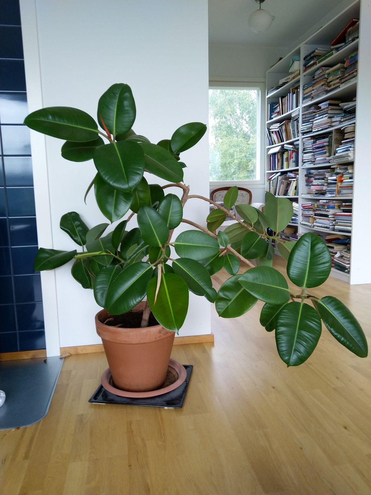 Edesmennyt saksalainen isäni oli taitava viherpeukalo ja lahjoitti minulle tämän " Gummibaumin ". Vaalin sitä erityisesti kun isää ei enää ollut ja keväällä vaihdoin sille mullan. Ilokseni sen kituliaisiin runkoihin puhkesi kevään jälkeen valtavasti uusia lehtiä !