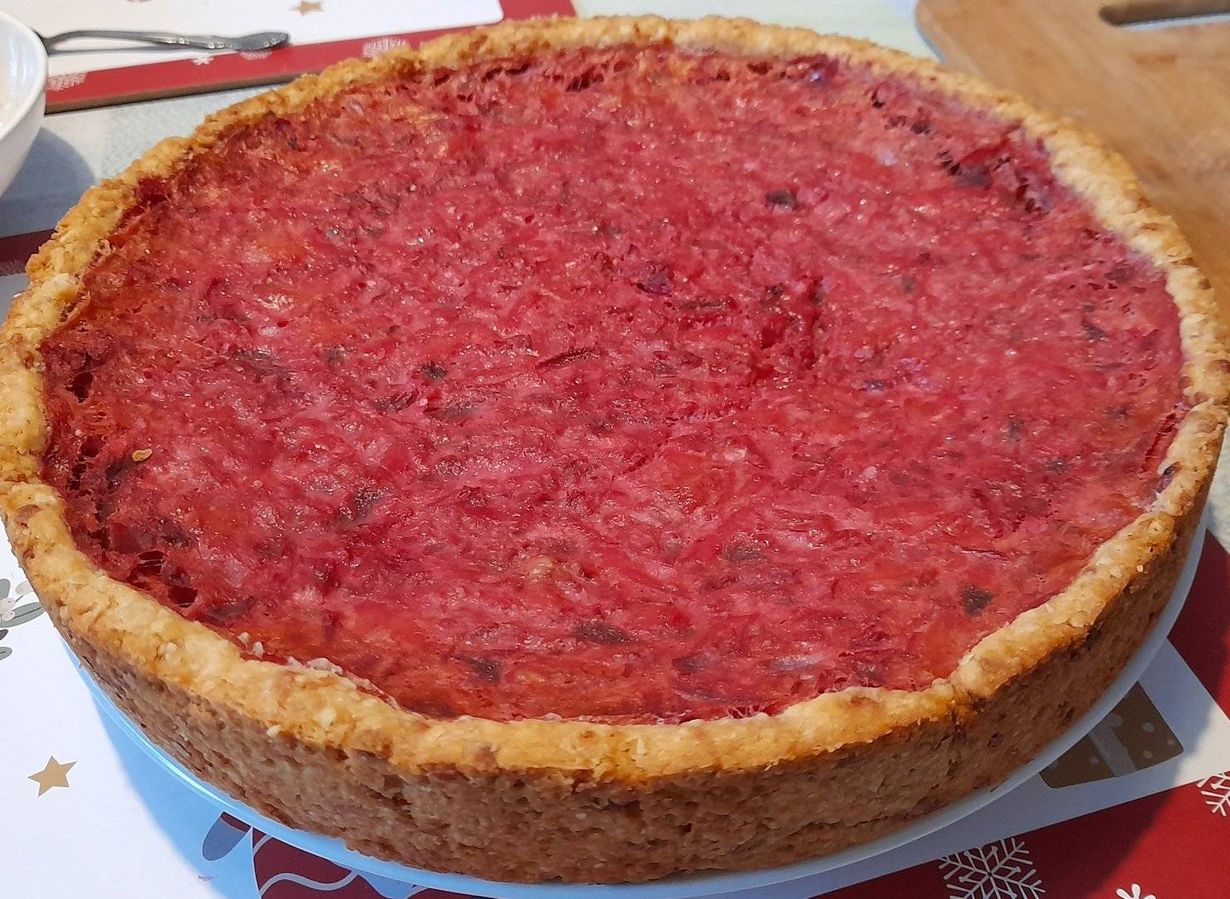 Tämän piirakan ideointi lähti siitä, että punajuuria oli kaapissa "liikaa", kun oli hommattu iso purkki etikkapunajuuria.