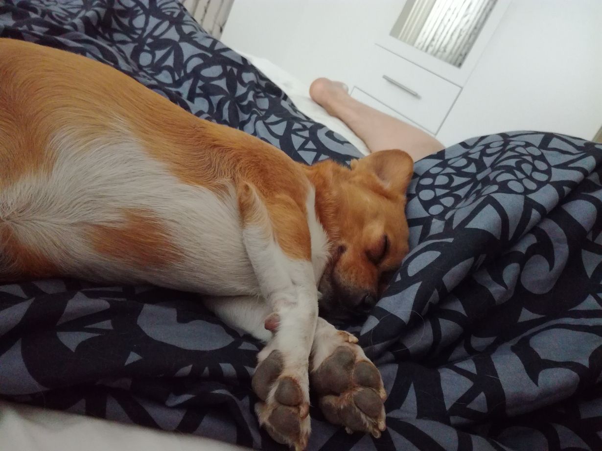 En saa unta ilman jaloissa tuhisevaa, Romaniasta adoptoitua koiraani. Mugurel toimii myös lämpöpatterina kylmille jaloilleni.