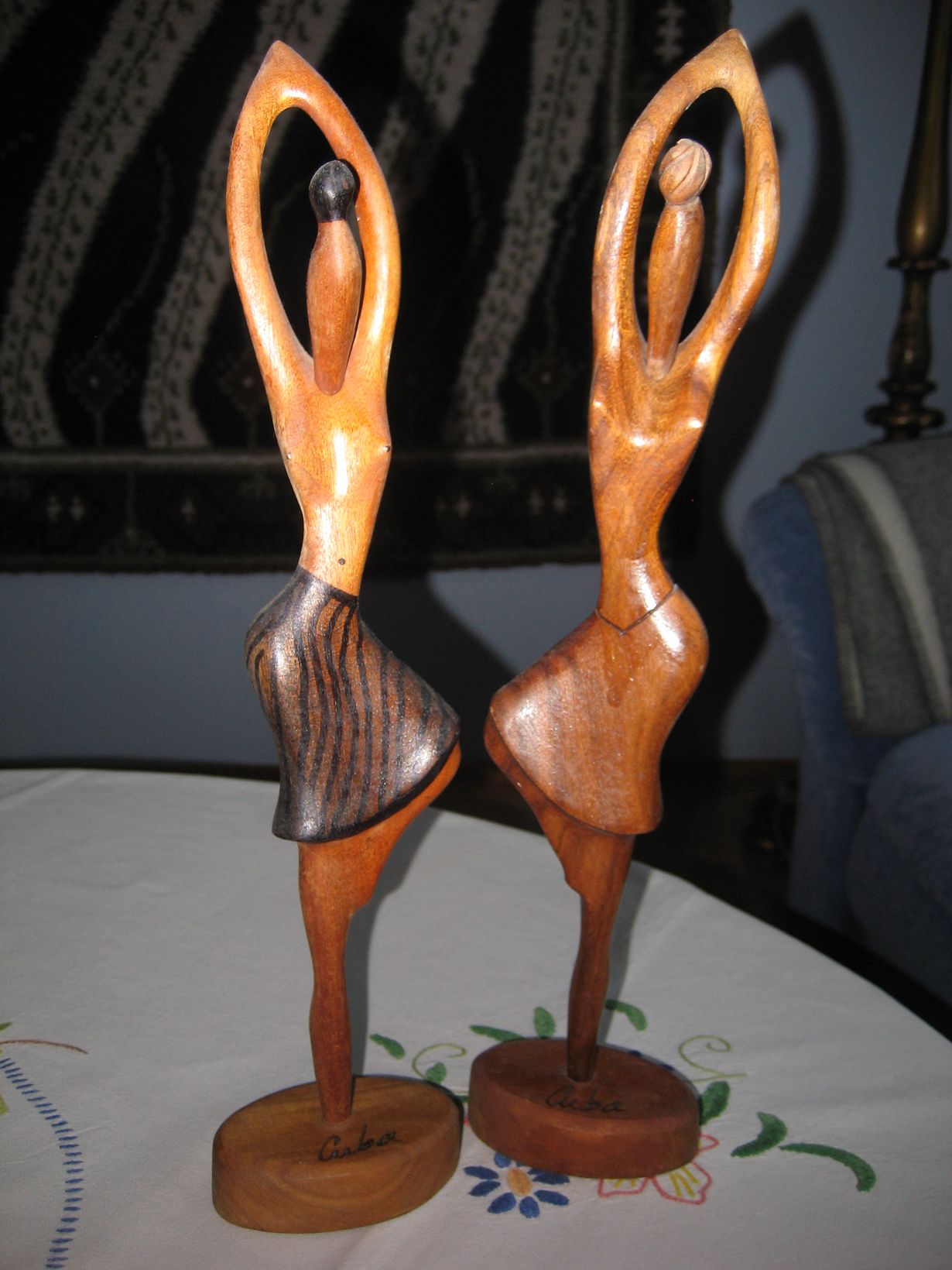 Kuuban vierailuilla ihastelimme mieheni kanssa kauniita, monenlaisia puutöitä. Useat ovat päätyneet lahjaksi ystävillemme, mutta nämä halusimme pitää itse. Kuubattaret vaihtavat usein tanssipaikkaa kodissamme.