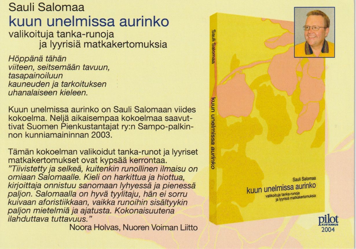 Kaksikymmentä vuotta sitten sain kustantajaltani kirjoittamastani kirjasta kortit, joita jaoin vakilukijoilleni. "Valoa synkkään tupaan, maailman pihaan. Sisimmässä on jo lyhty, jopa kaksi. Me valolta suojassa."