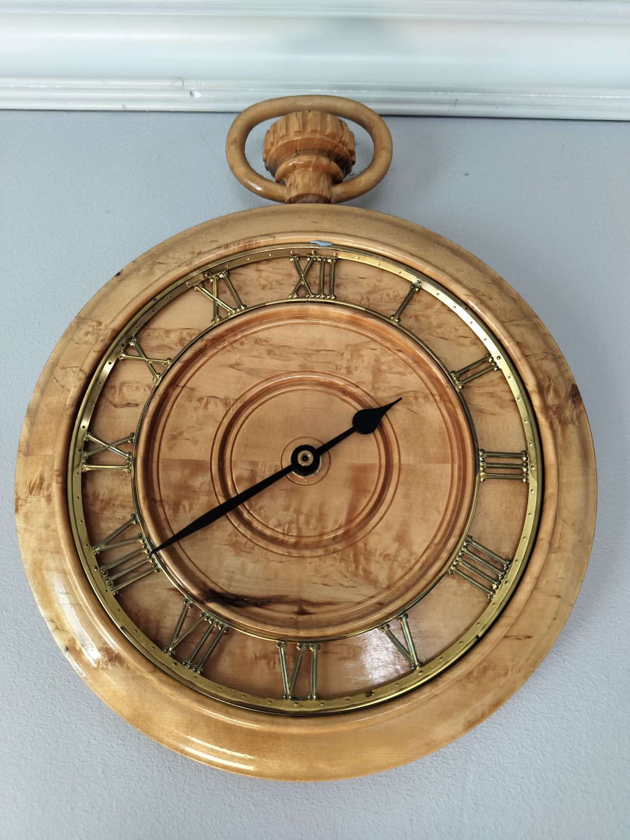 Ystäväni nikkaroi tämän puisen kellon minulle ylioppilaslahjaksi vuonna -89. Se on kulkenut mukanani kaikkialle missä olen asunut, Kanadaan asti. Edelleen se huolehtii, että en uppoudu aamuisin liian pitkäksi aikaa aamukahvin ääreen, vaan ehdin ajoissa töihin.