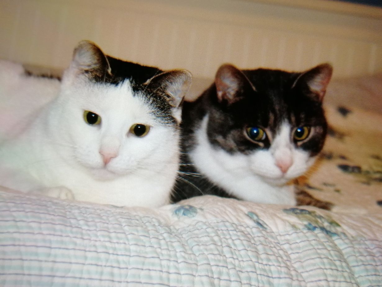 Löytökissat Pilli ja Pulla alkuaikoina kuvattuna. Ovat olleet minulla nyt reilut kahdeksan vuotta. Kesyyntyminen kesti kauan mutta mihinkä sitä kiire olisi - tällaisten ollessa kyseessä!
